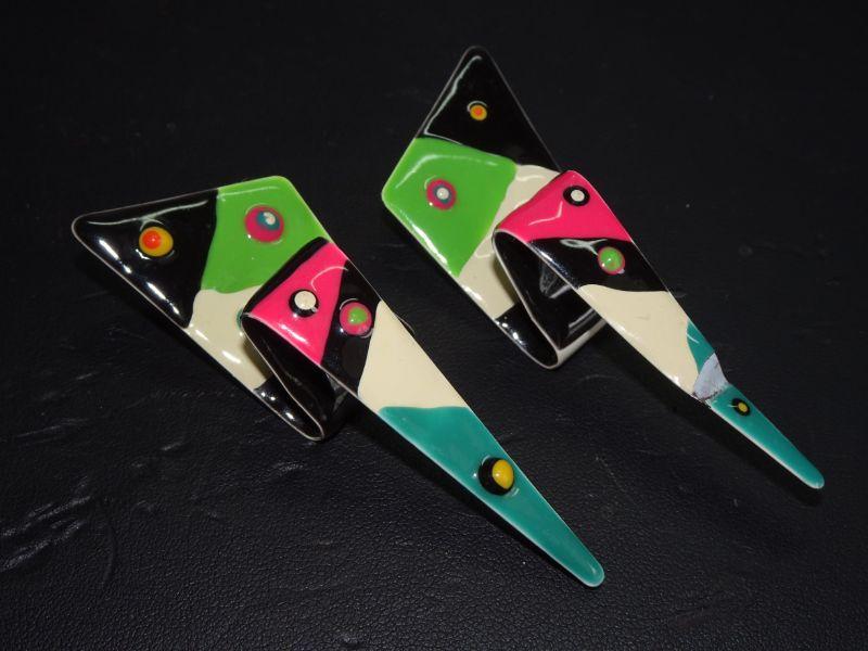 1980's Punk rock Lighting Bolt Earrings, Neon, Post earrings