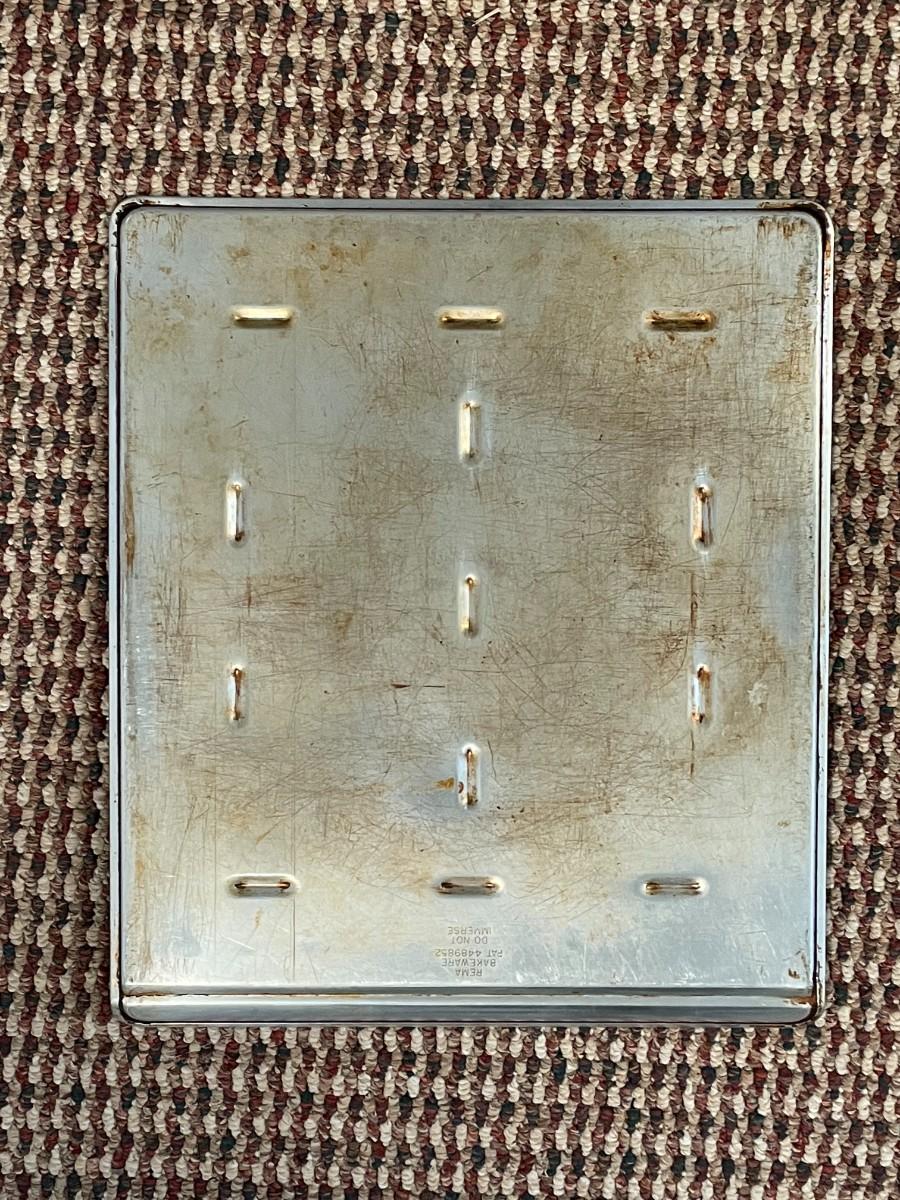 This cookie sheet was purchased at the same time as Lot 121 and in the same condition. It is about 12 inches by 14 inches and in great, gently used condition.