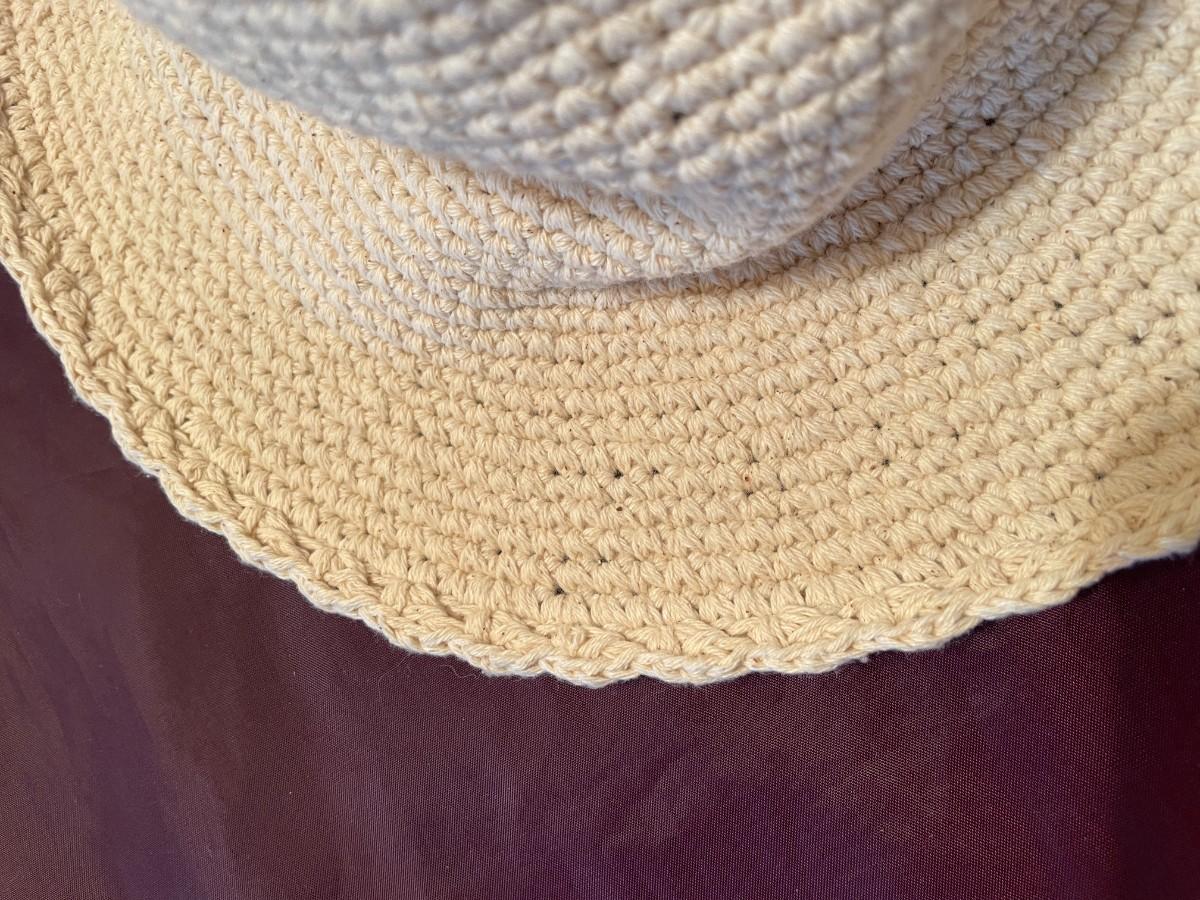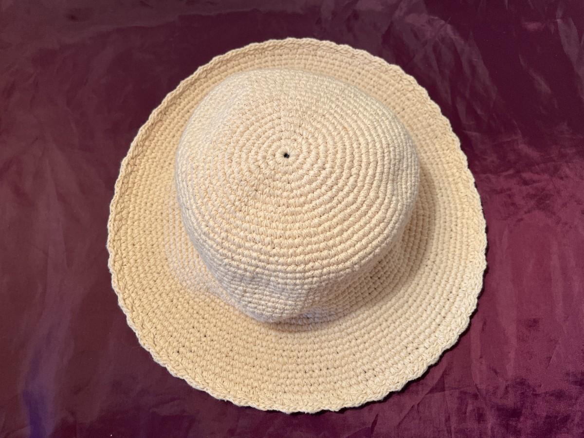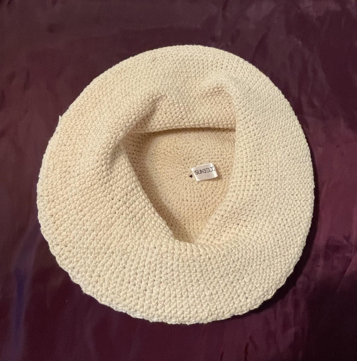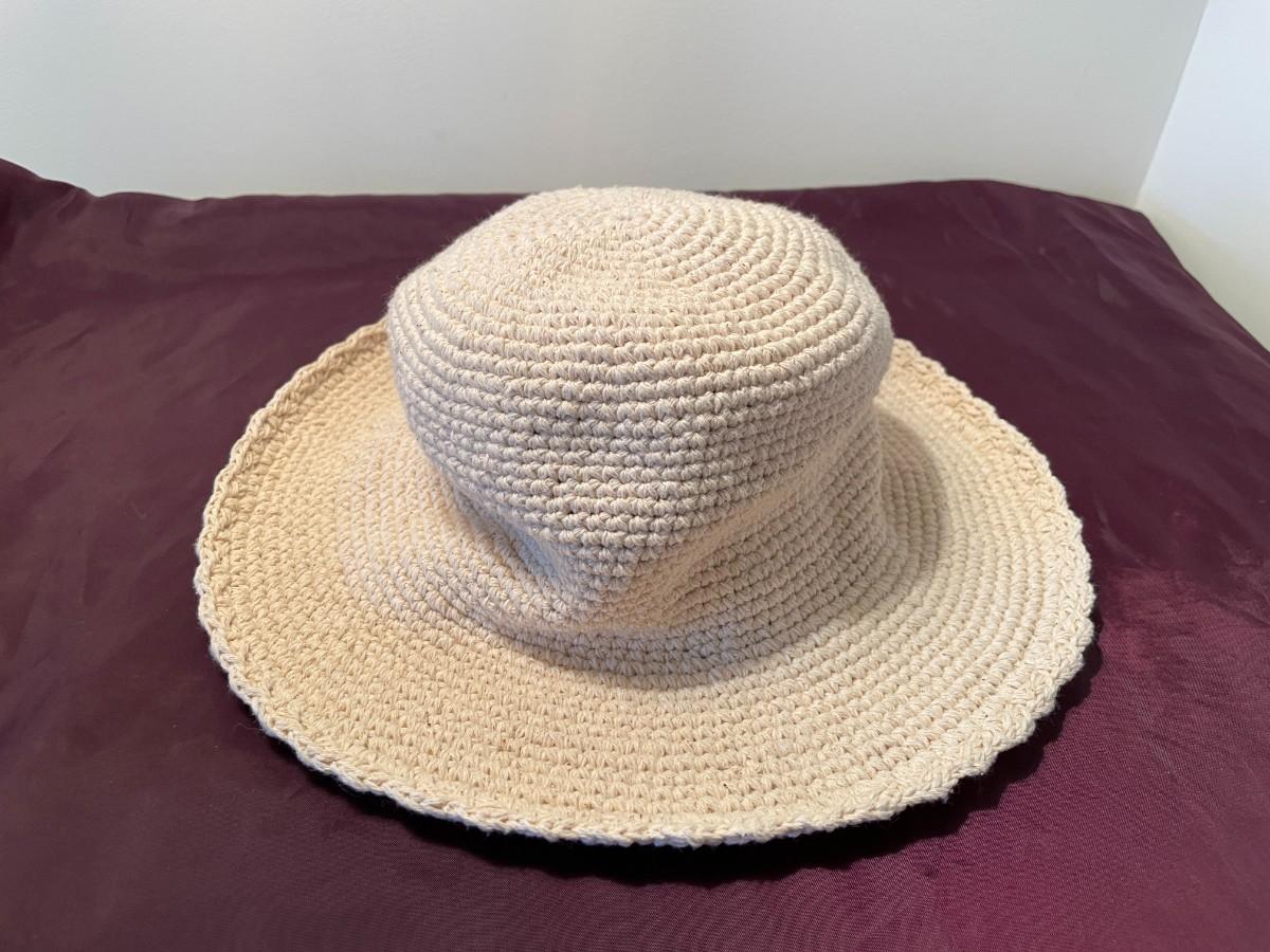 This is an ivory colored, cotton thread, crocheted hat that they consignor got from her New York friend at the same time as Lot 190. It is in excellent, very clean condition and could be worn as it or imagine a pretty flower embellishing it.