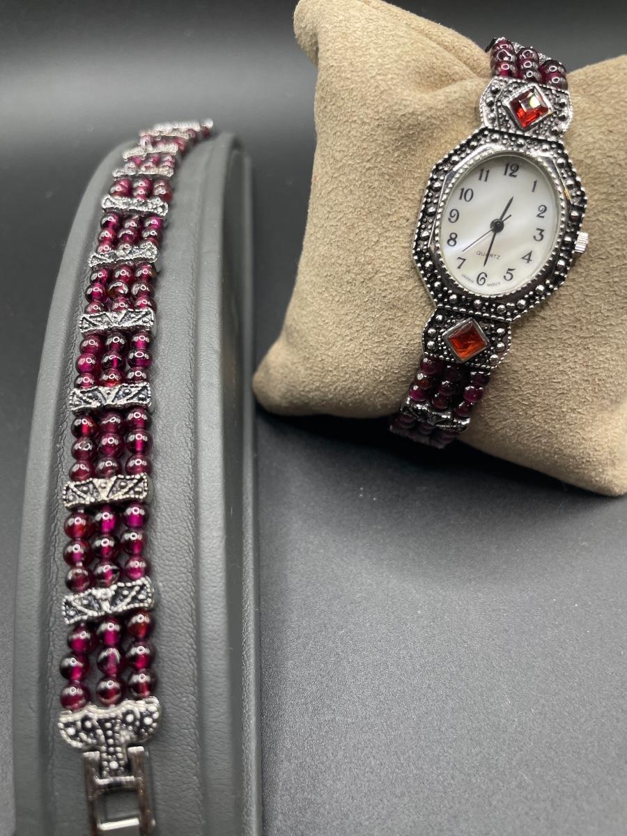 1980s vintage garnet bead watch and bracelet