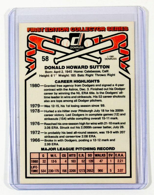 1981 Donruss Baseball DON SUTTON Los Angeles Dodgers Baseball Card - High Grade
