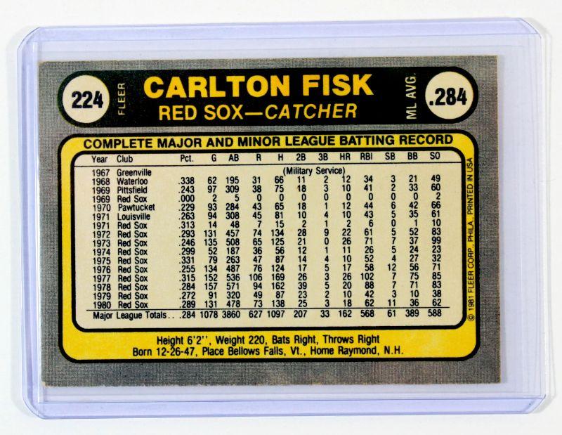 1981 Fleer #224 Carlton Fisk Boston Red Sox Baseball Card - High Grade