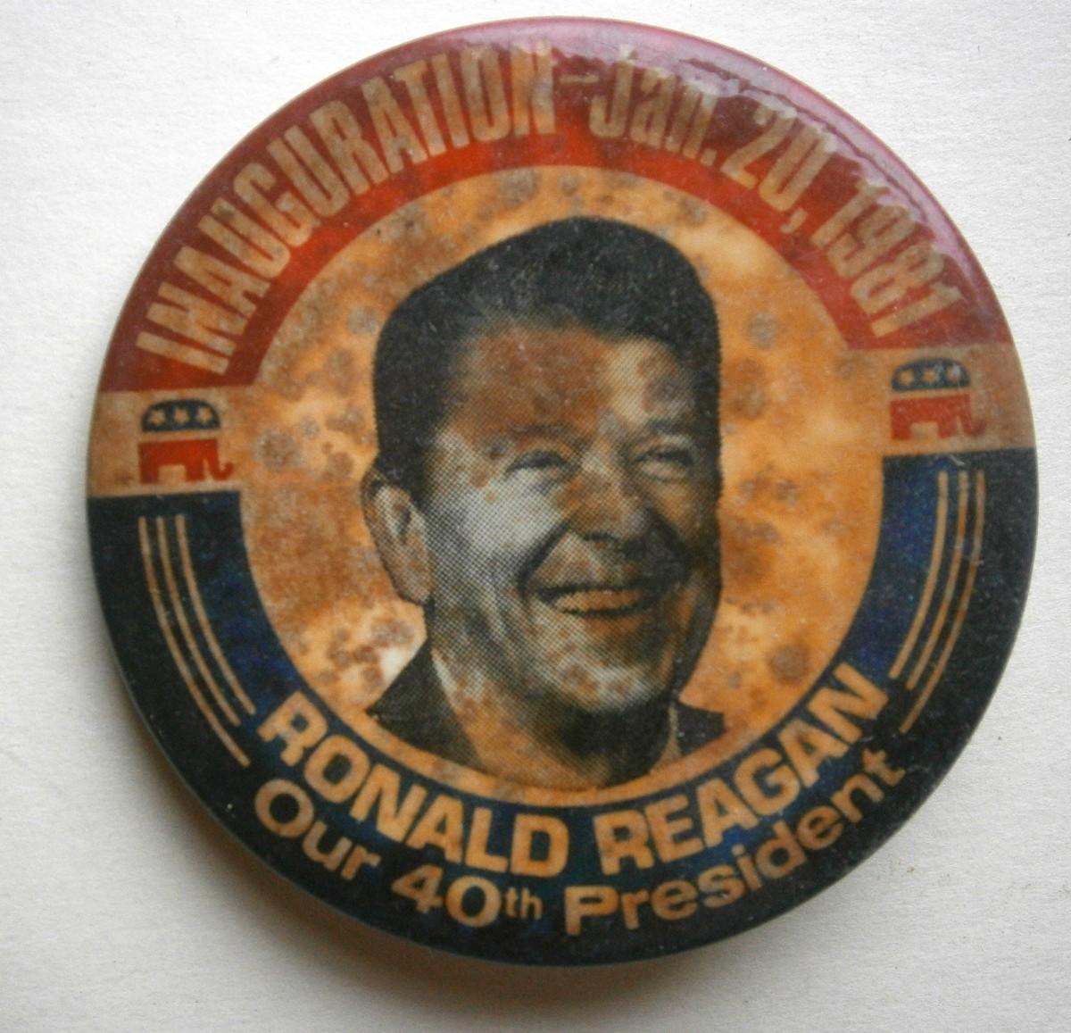 1981 RONALD REAGAN Inauguration Pinback Button, 2 1/4 in., celluloid over tin, by the Slater Corp. NYC,