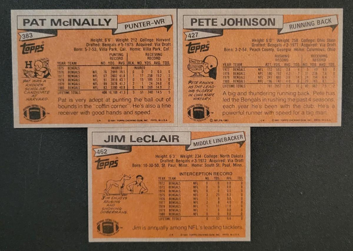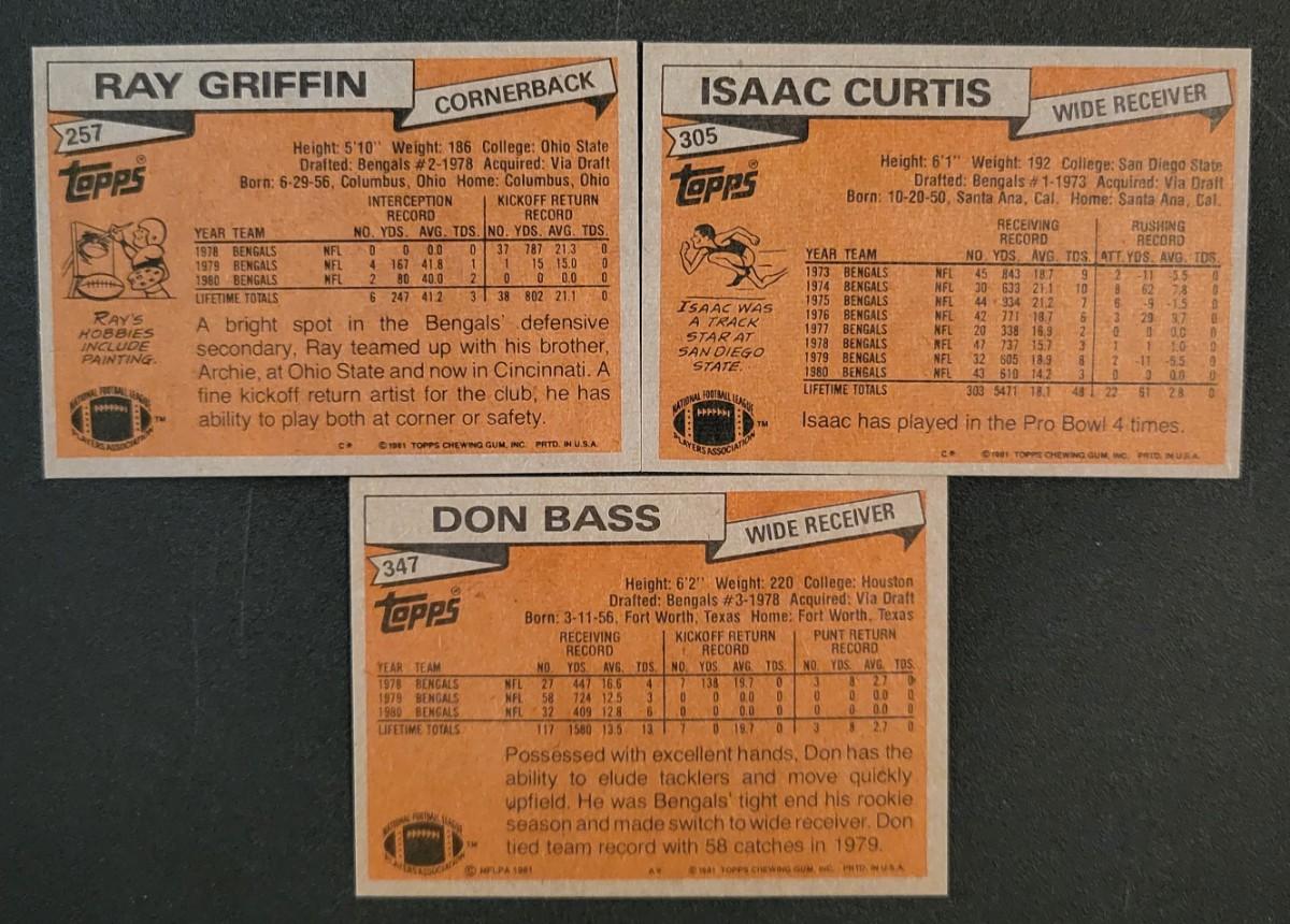 1981 Topps Chewing Gum Inc. Bengals Various Players