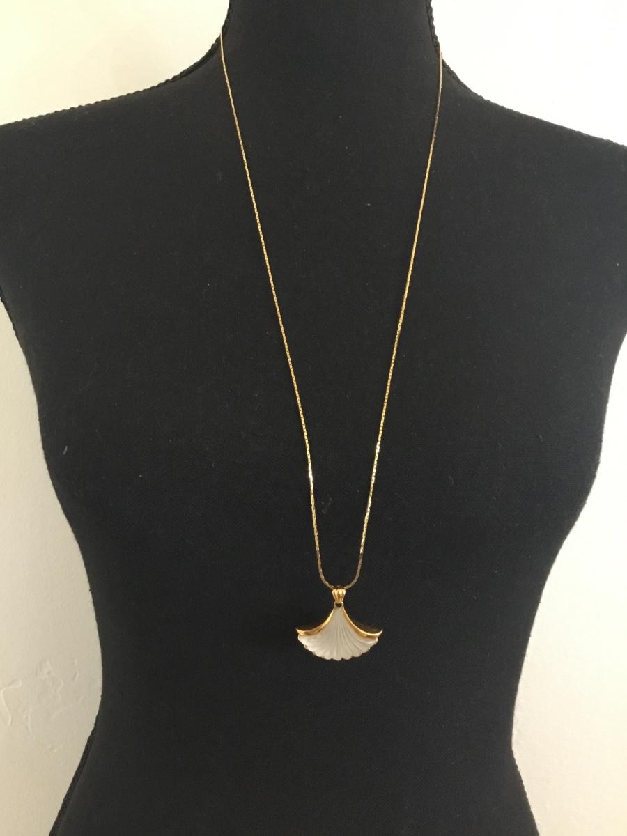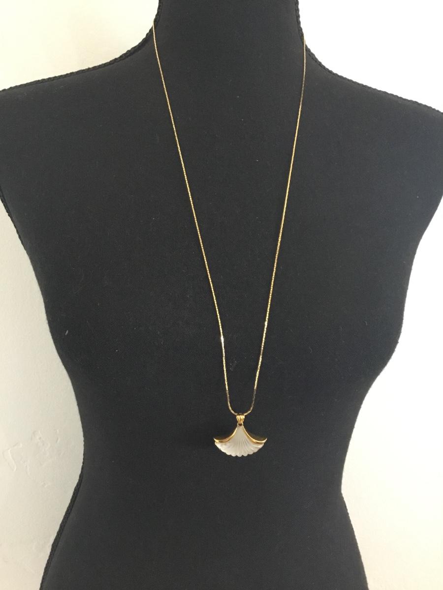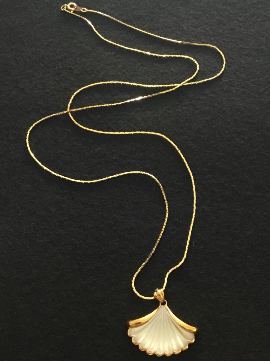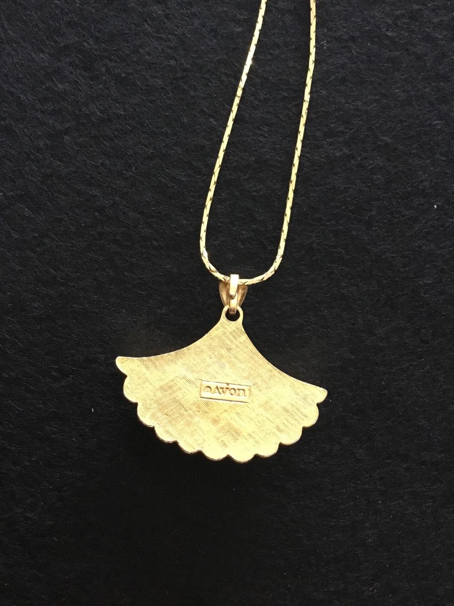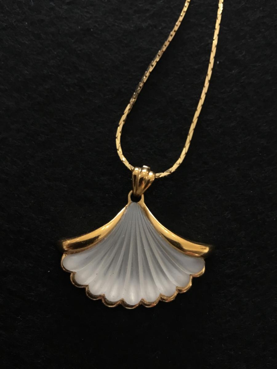 1981 Vintage Avon, Genuine lead crystal shell pendant, and gold tone necklace