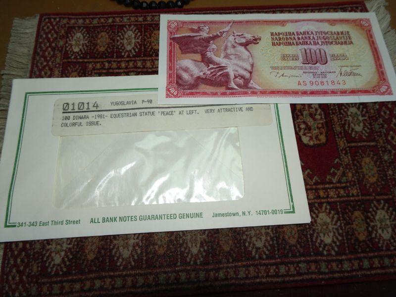 1981 Yugoslavia Banknote Equestrian Statue 100 Dinaras  - Lot M-2