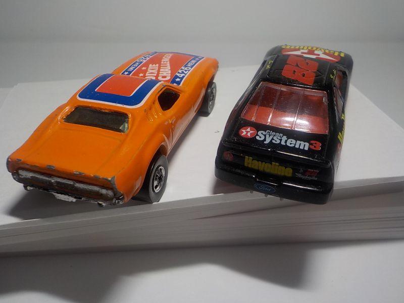The classic dixie dodge challenger and the ford #28.