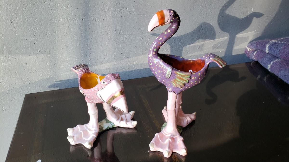 1982 hand made ceramic birds that are bowls
