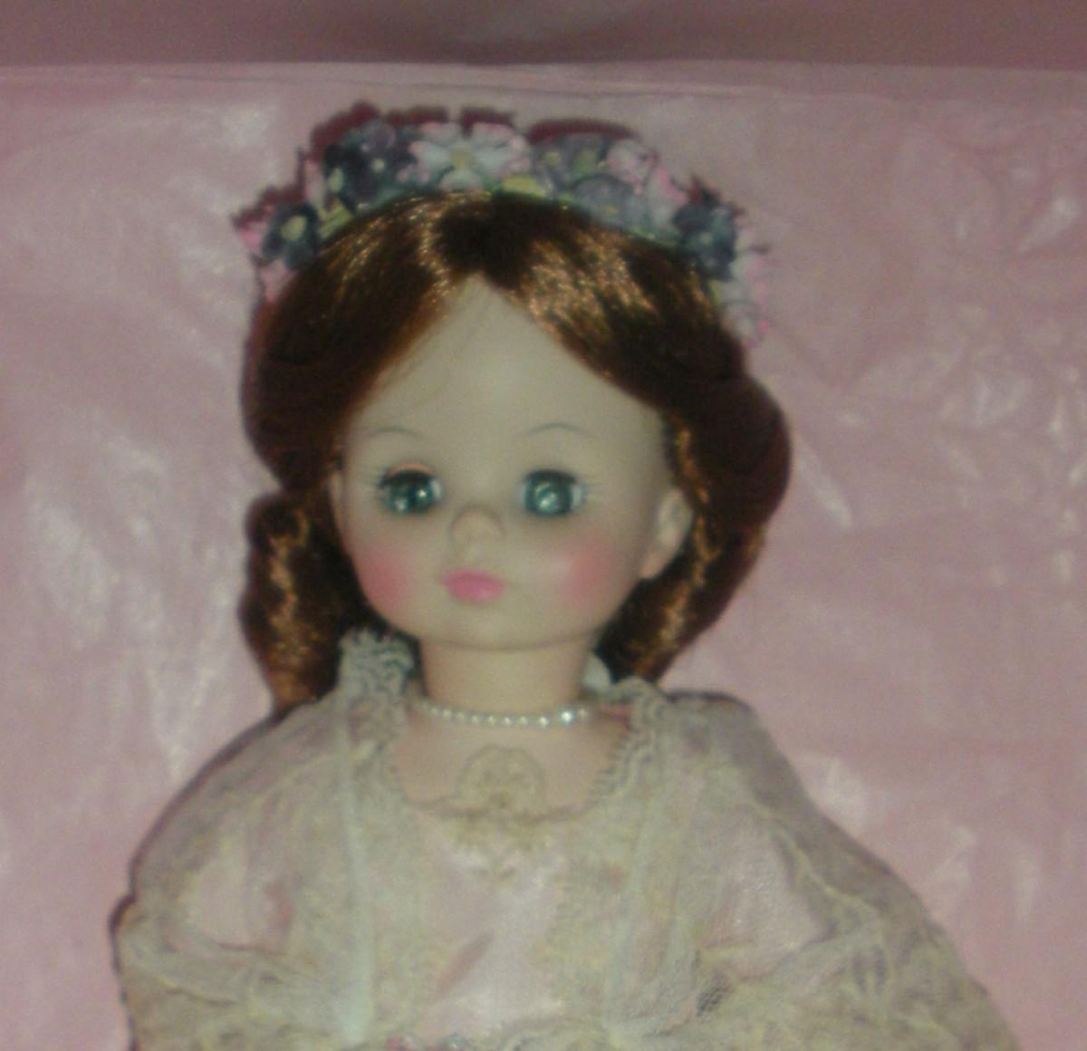 Gorgeous never played with and never displayed doll. Good coloring like closeup. In original box with wrist tag. Box is in excellent vintage condition.