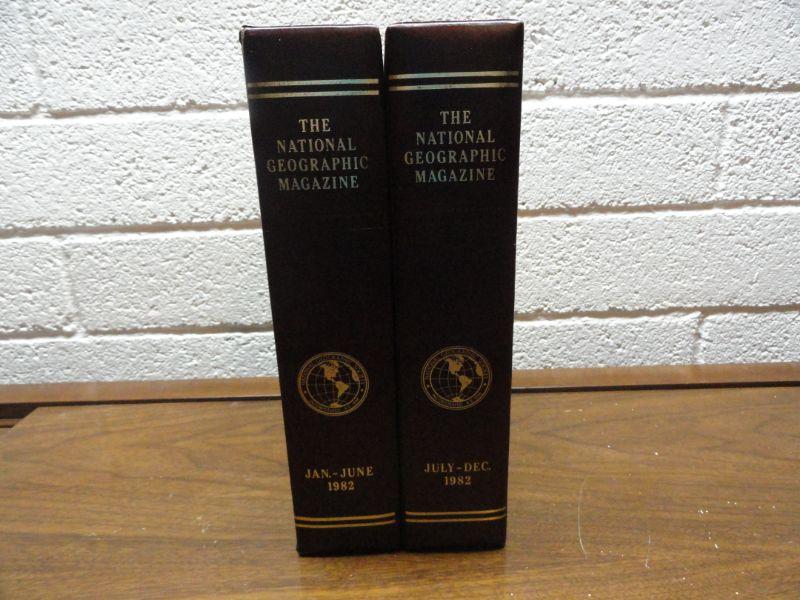 1982 National Geographic Magazine - complete set of 12 with faux leather cases Cases in great condition Books in normal good condition