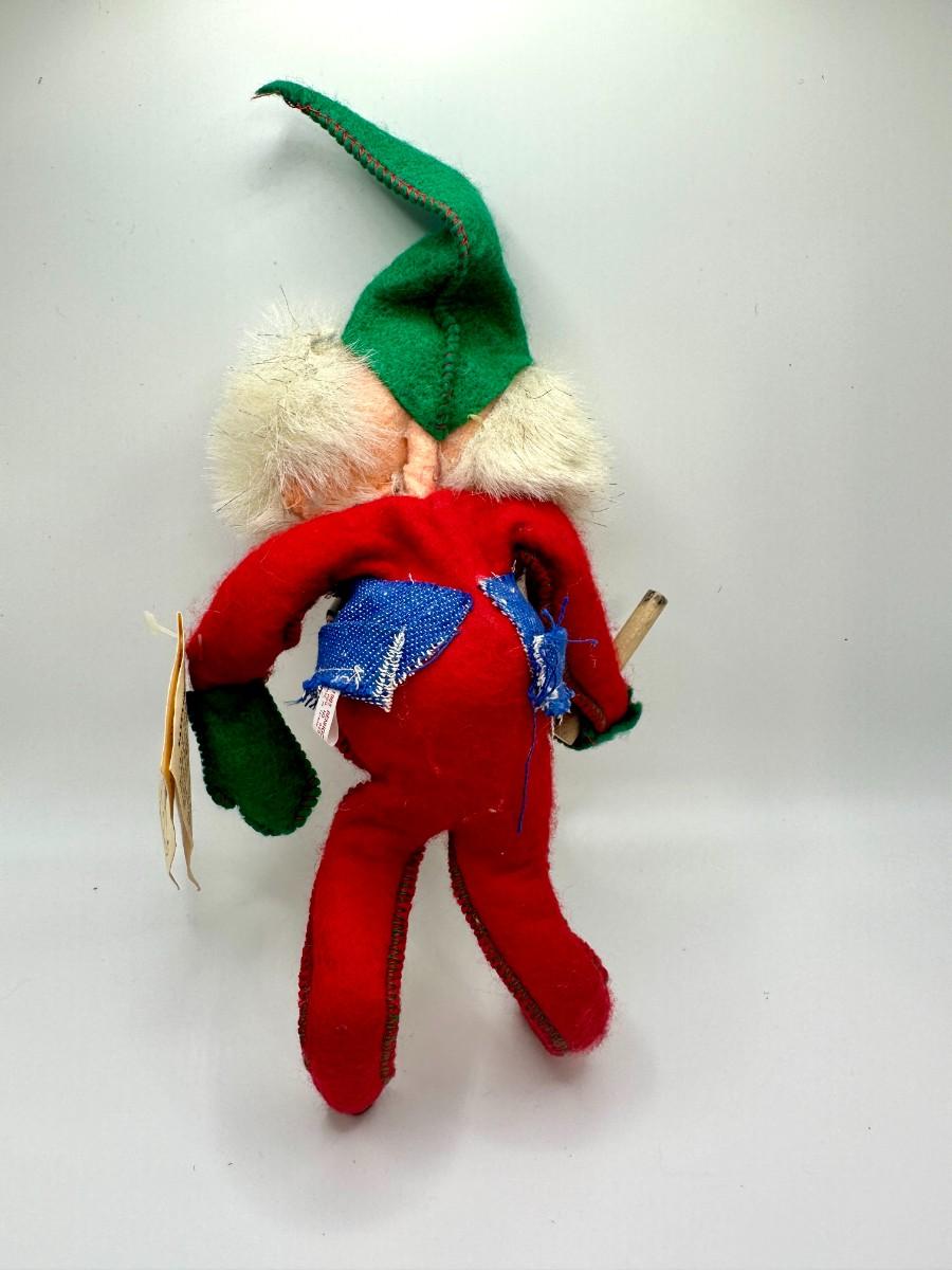 Bendable Santakins plush named Grubby. Made of felt with a hand painted face. Ax is broken off and missing it's green boots.