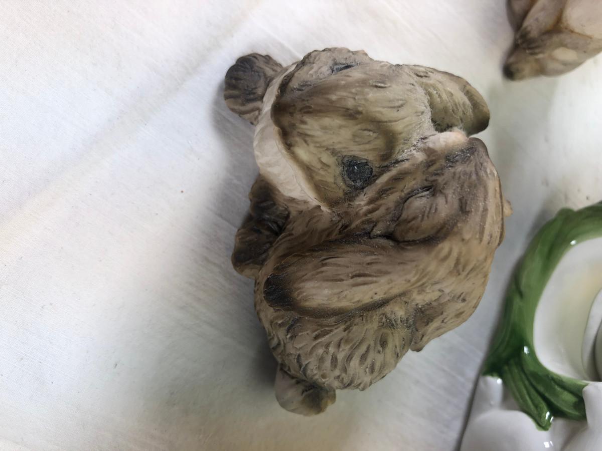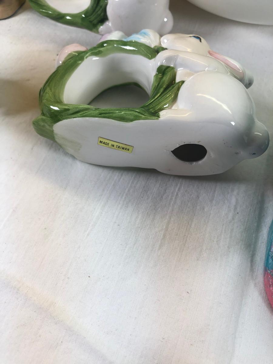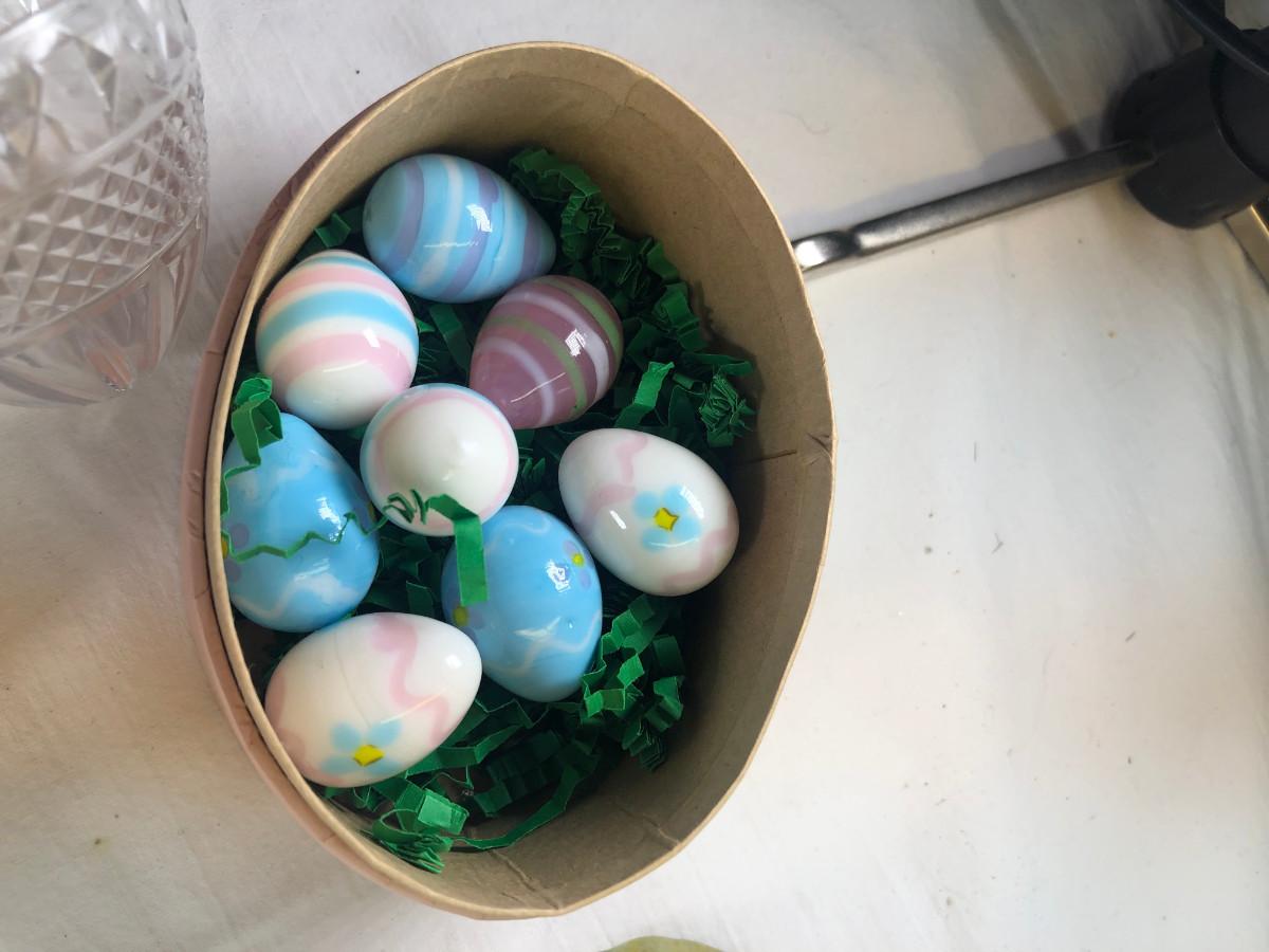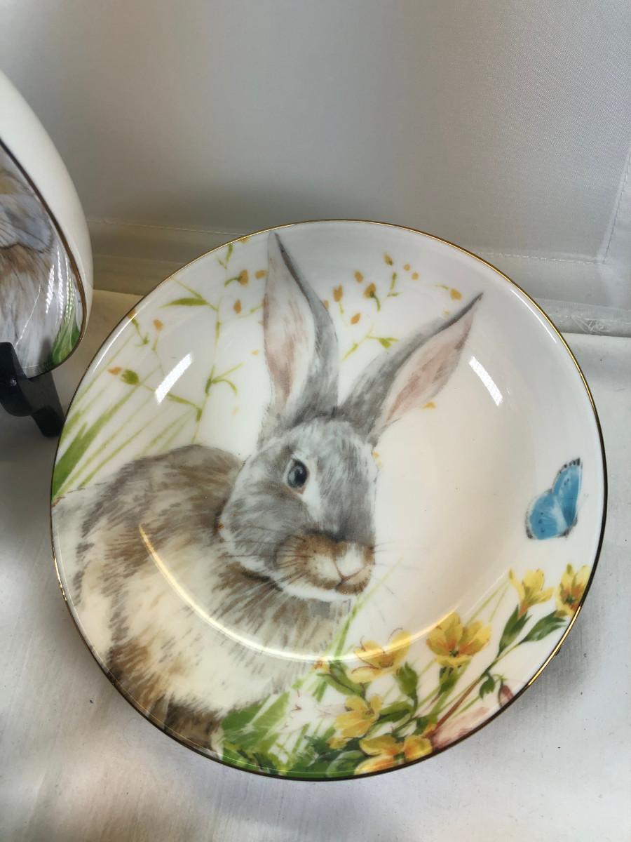Mice and Rabbit figurines Glass eggs, Bunny plates,