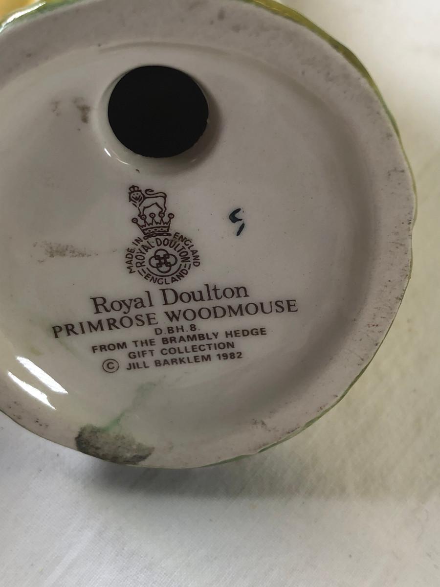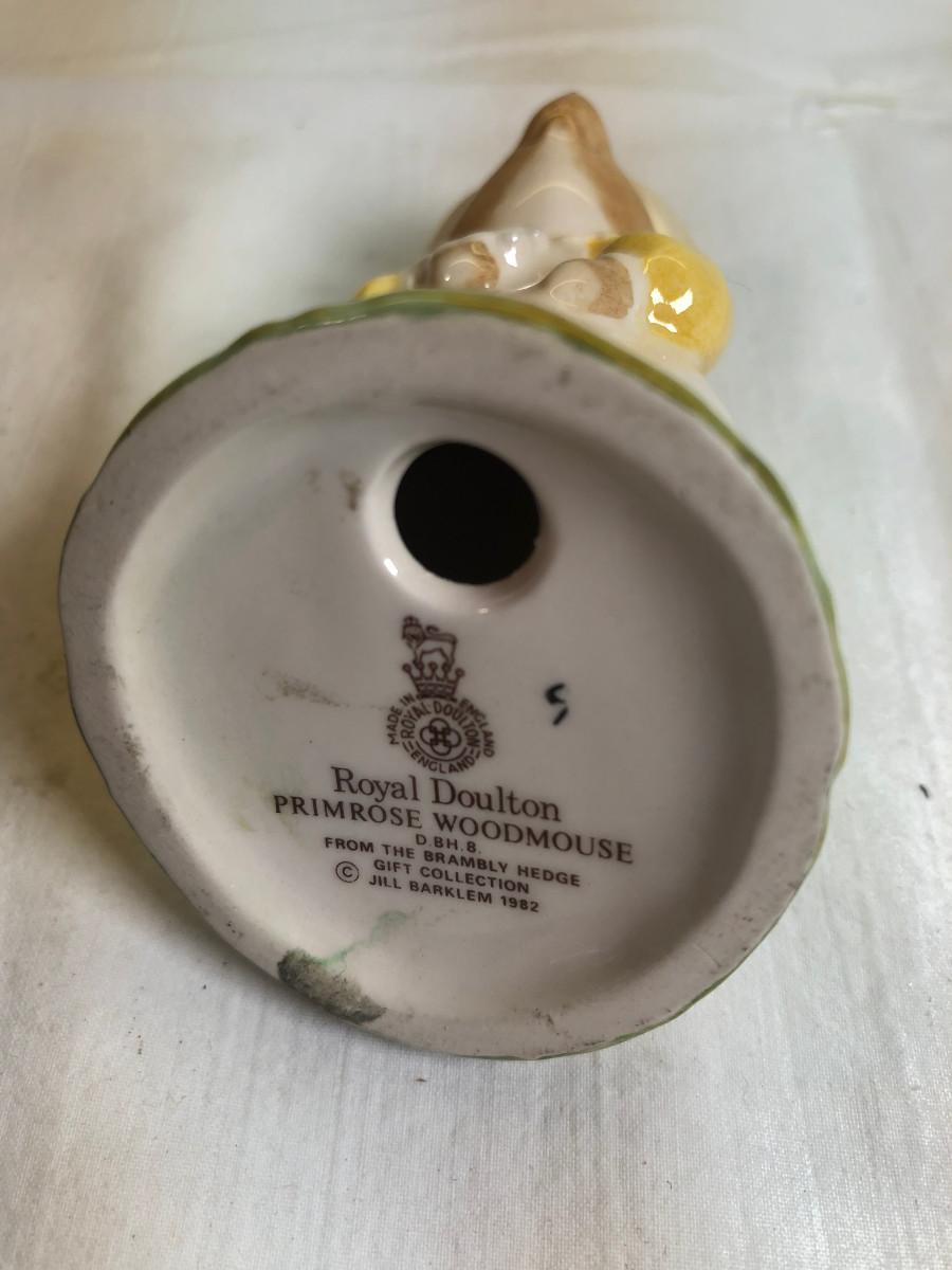 1982 Royal Doulton Primrose Woodmouse figurine Jill Barklem artist Made in England, no box. Beatrix Potter Mrs Mouse at work.