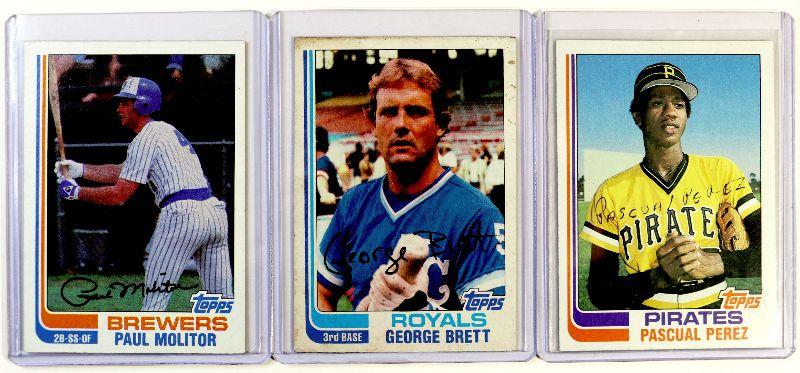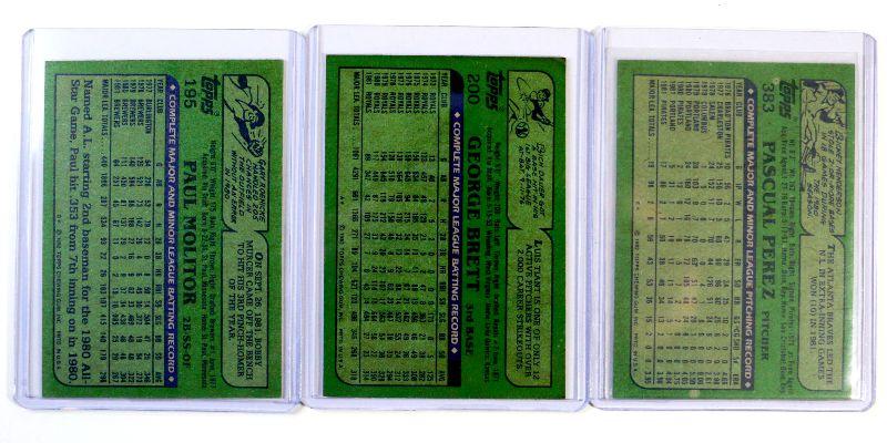 1982 TOPPS #195 #200 #383 MOLITOR / BRETT / PEREZ - 3 BASEBALL CARDS SET - EX