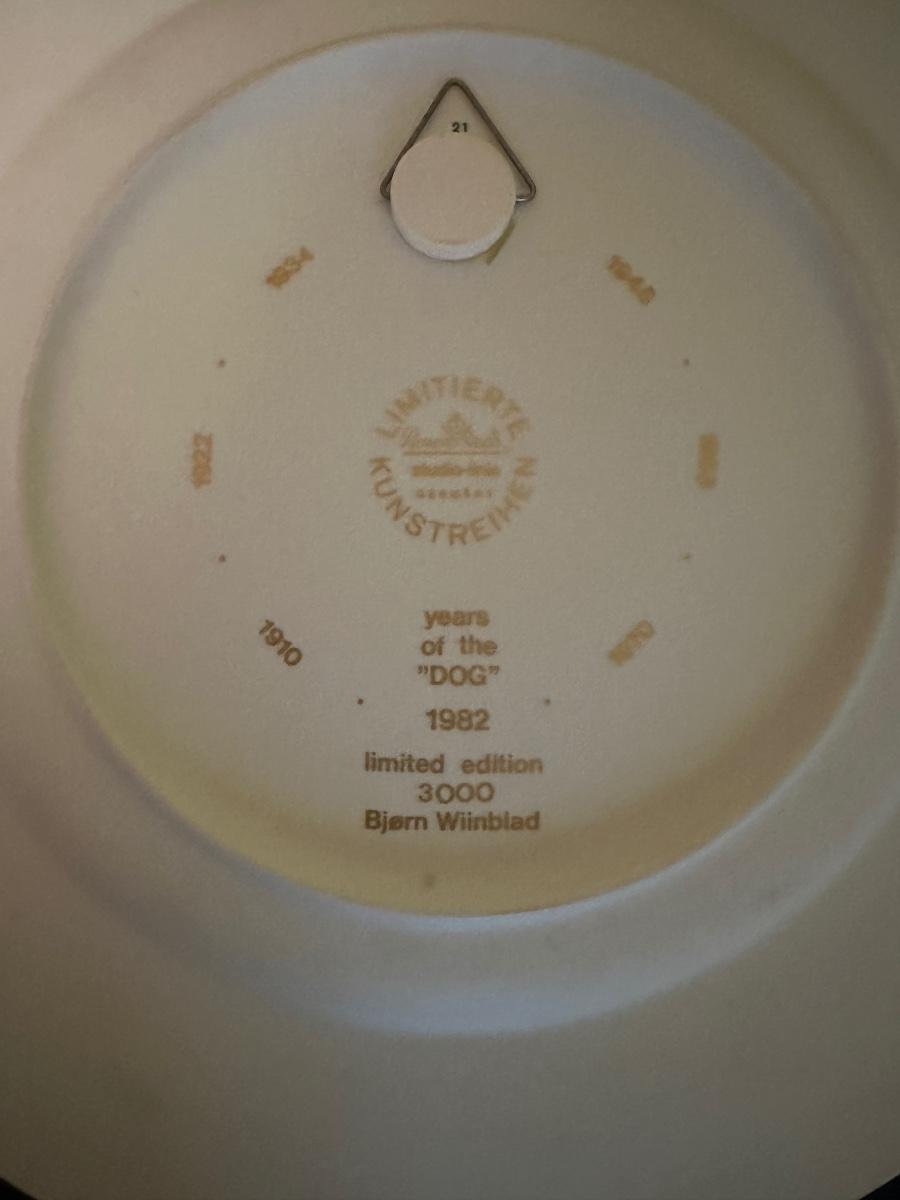 1982 YEAR OF THE DOG COLLECTOR PLATE LIMITED EDITION BJORN WIINBLAD 11" ACROSS