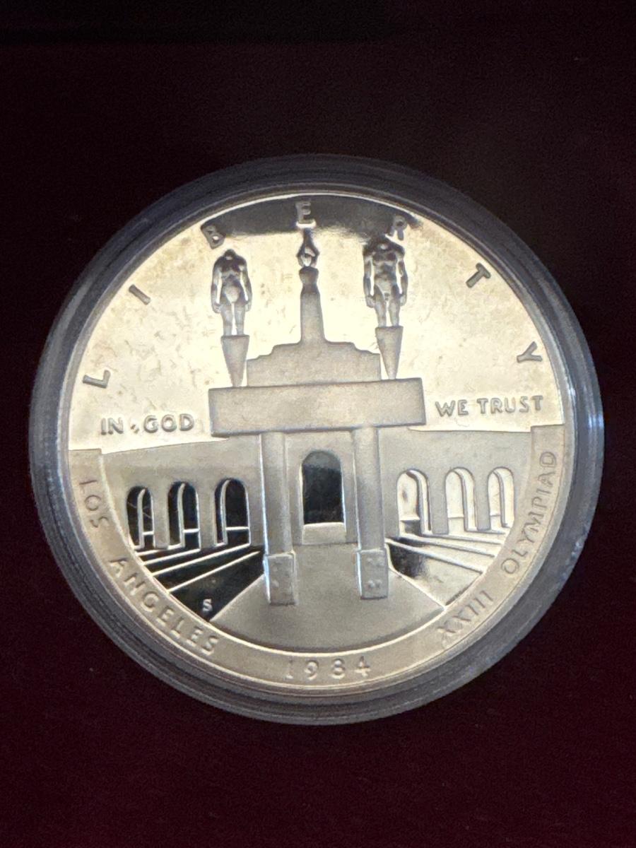 1984 Gateway to Olympic Colosseum with American eagle on reverse.