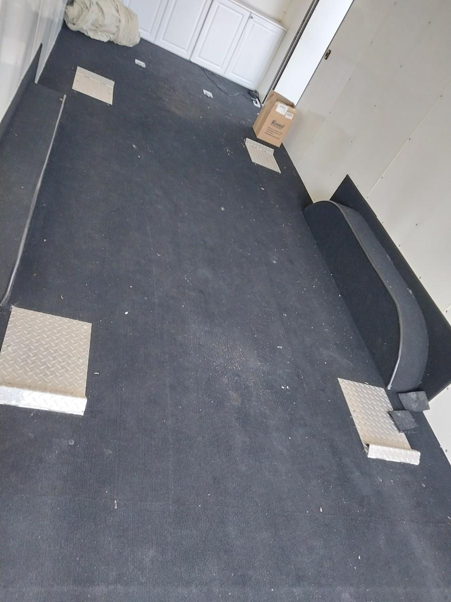 THE TRAILER IS EQUIPPED WITH A LOCKING SIDE DOOR, BUILT IN TIE DOWNS, INDOOR/OUTDOOR CARPET AND METAL FLOOR PLATES WHERE THE CAR TIRES REST.