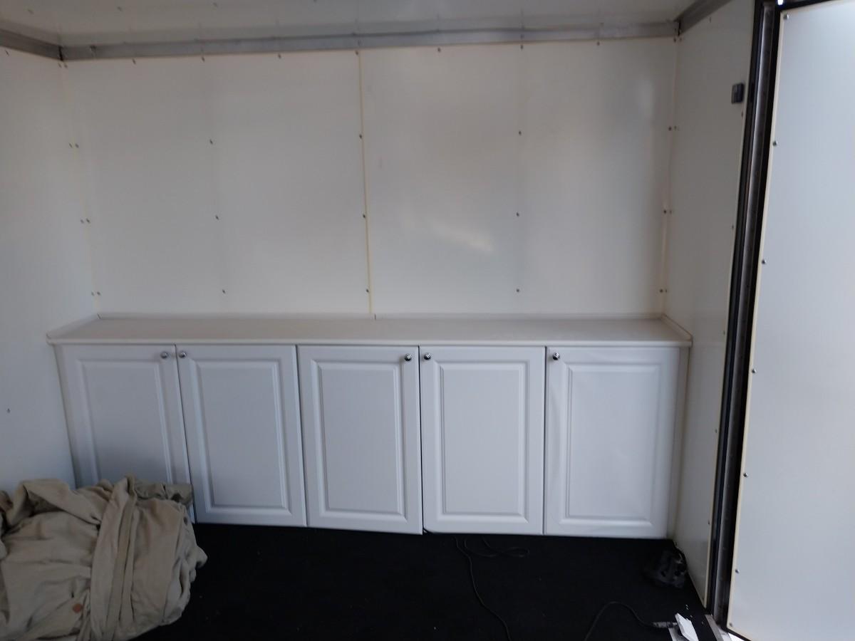 THERE IS A 5-DOOR CABINET LOCATED ON THE INSIDE FRONT