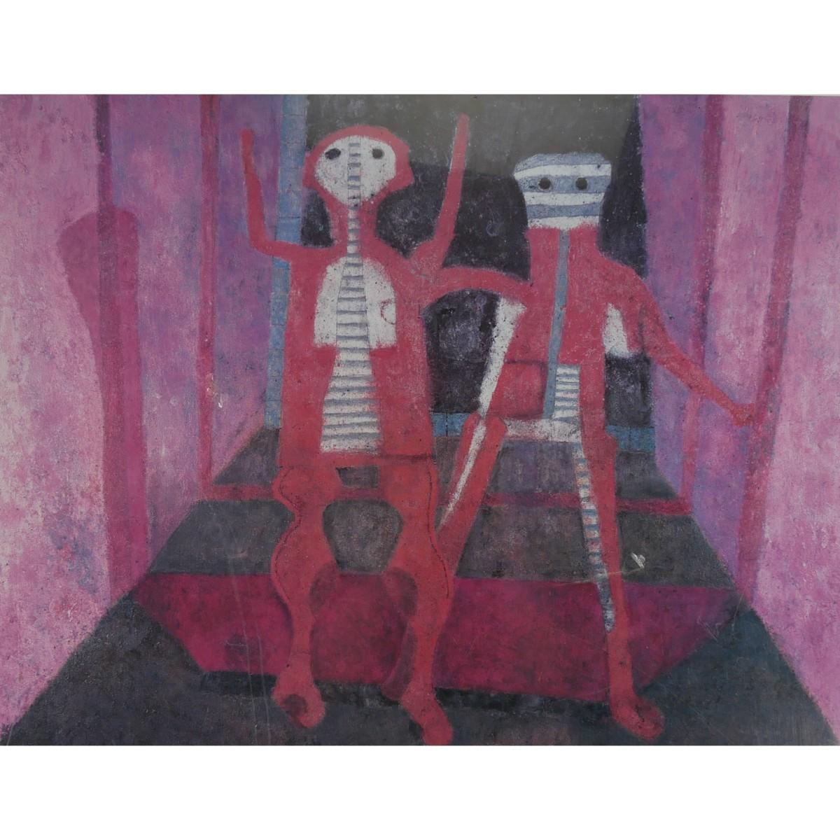 "Friends of Mexican Art 20th Anniversary Phoenix, AZ 1963-1983" 1983 exhibition poster by Rufino Tamayo. Print signed by artist. Poster is sealed with cardboard backing but has water damage on one bottom corner. Art measures L 21.75" x H 17". Poster measures L 24" x H 27" x D 0.5". Weight is 2 lb 5oz. (A55)