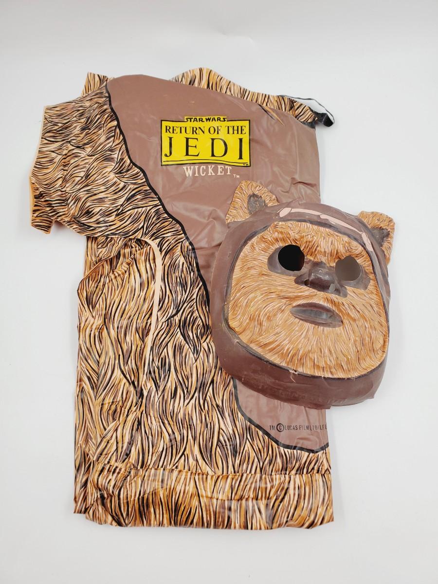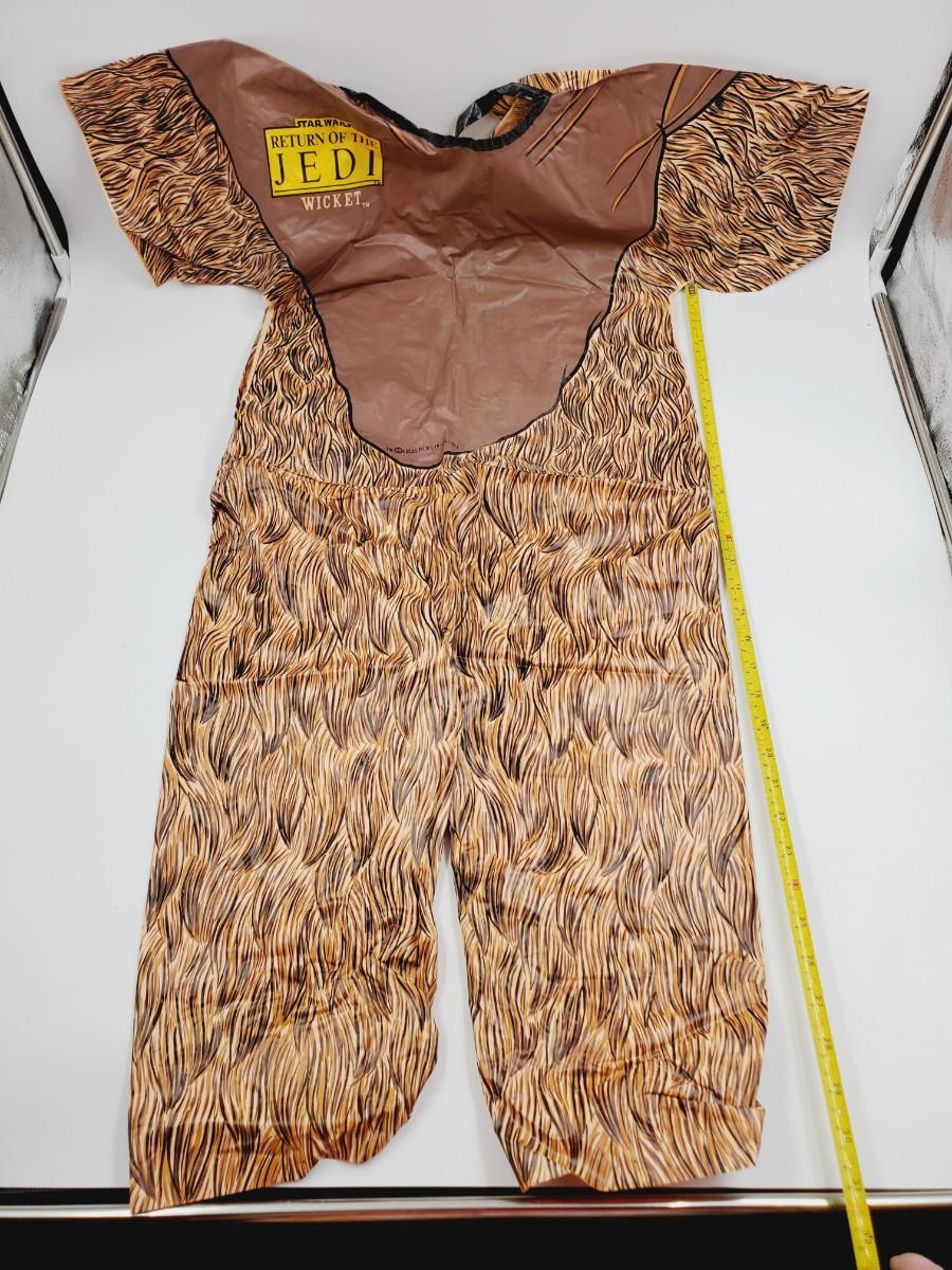 This Halloween costume is amazing! 1983 Lucasfilm Star Wars Return of the Jedi Wicket. The mask does have some breaks around the edges, see photos. The actual costume is in good overall condition with no significant rips or tears, I did not notice any. Size 8-10..