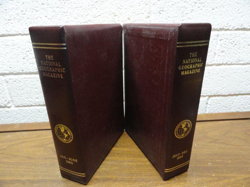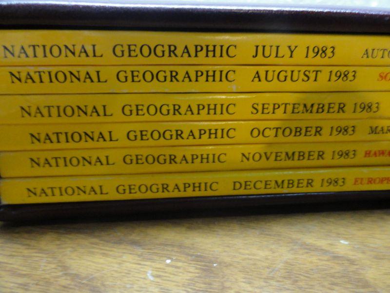 1983 National Geographic Magazine - complete set of 12 with faux leather cases Cases in great condition Books in normal good condition