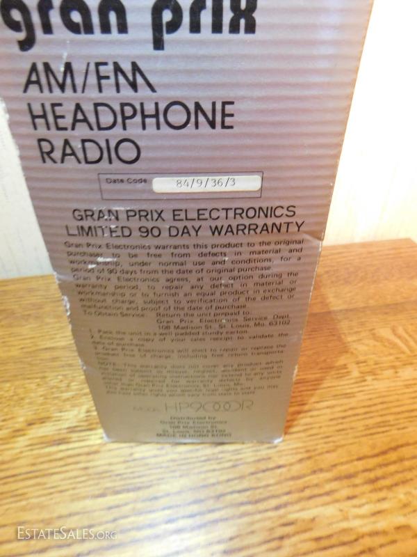 1984 Gran Prix AM/FM Headphone Radio with box. Not tested.