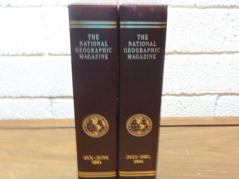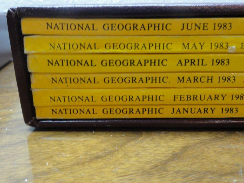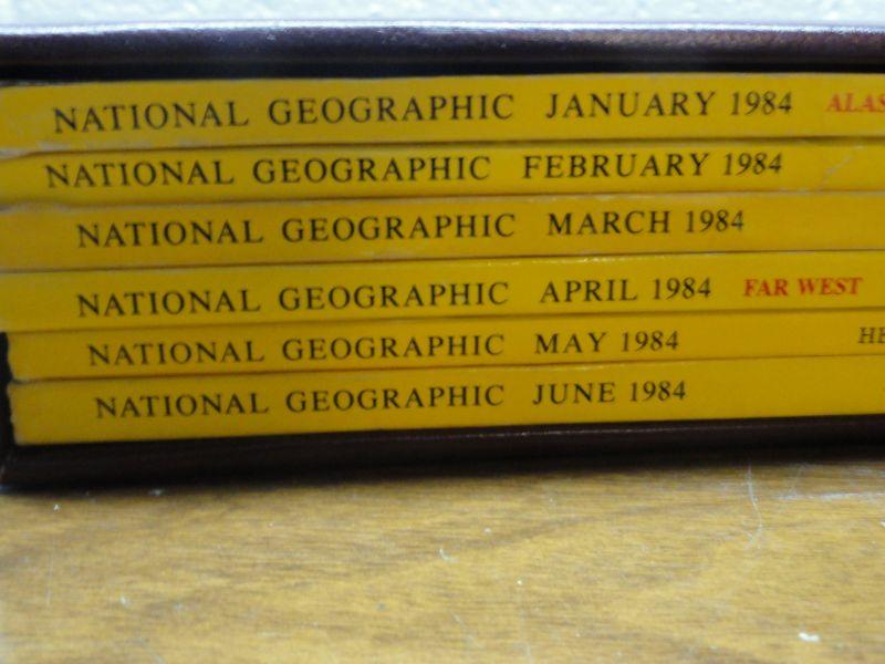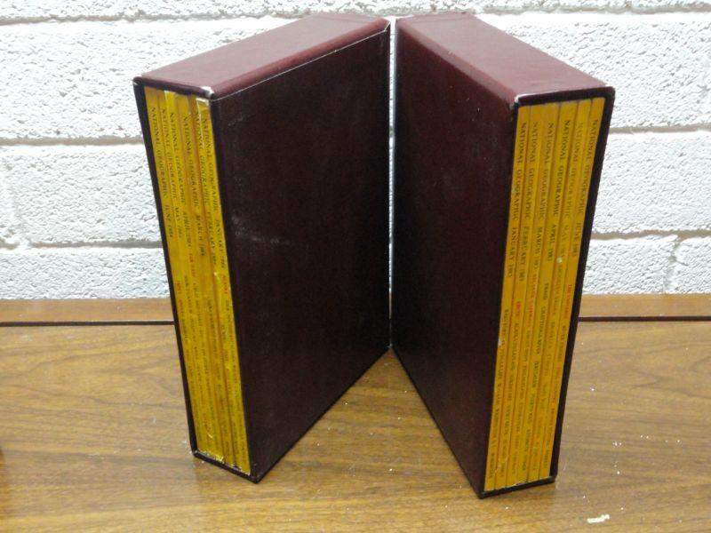 1984 National Geographic Magazine - complete set of 12 with faux leather cases Cases in great condition Books in normal good condition