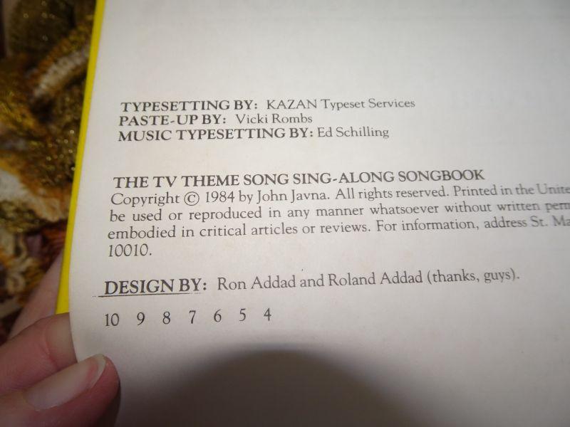 1984 The TV Theme Song Sing Along Song Book