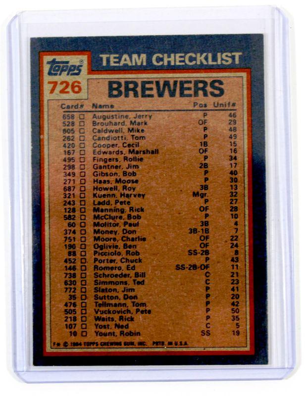 1984 TOPPS Baseball #726 TED SIMMONS Moose Haas Milwaukee Brewers Baseball Card High Grade