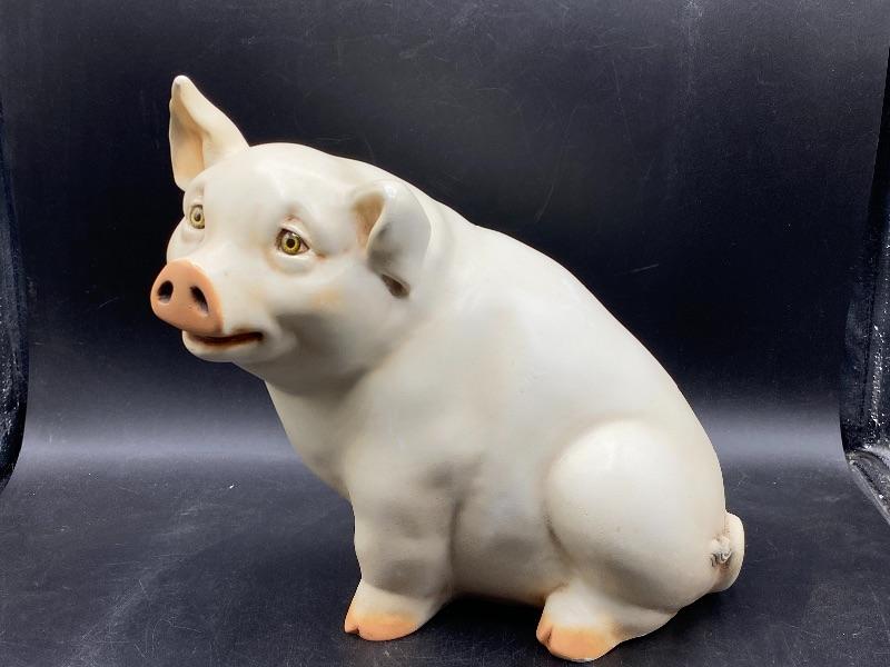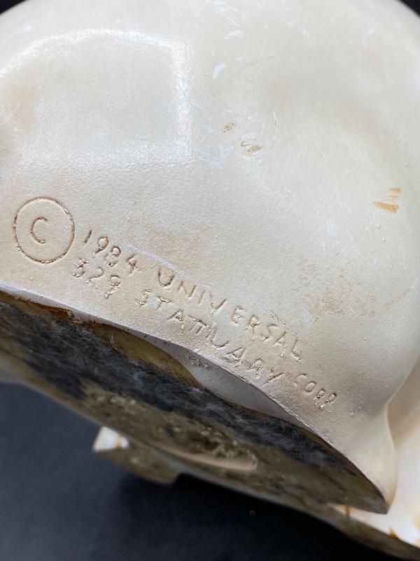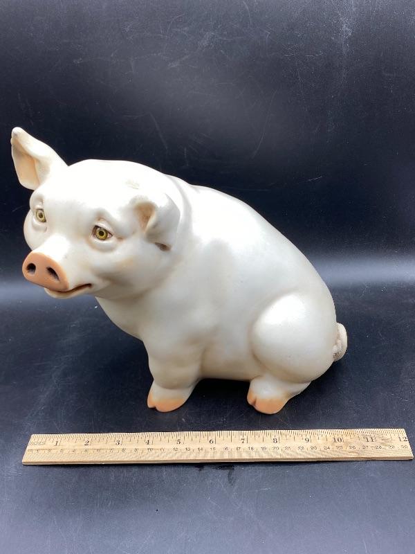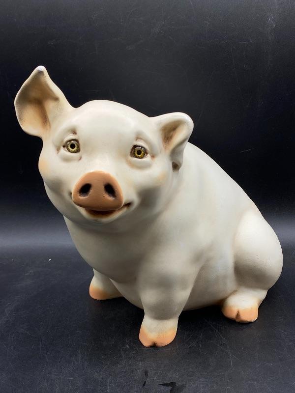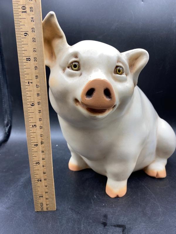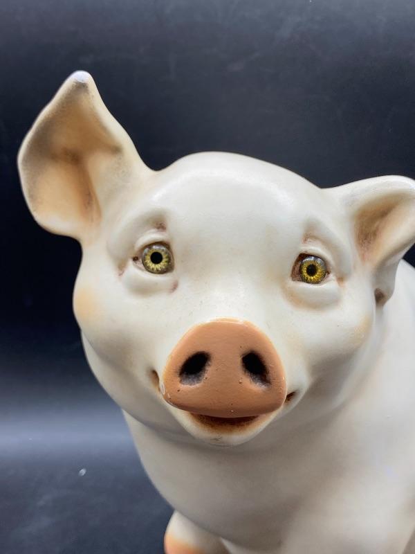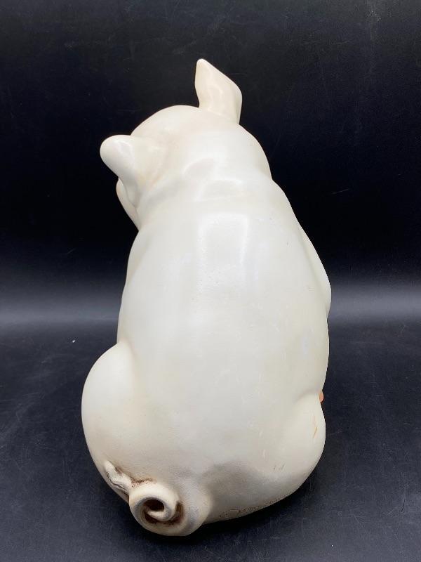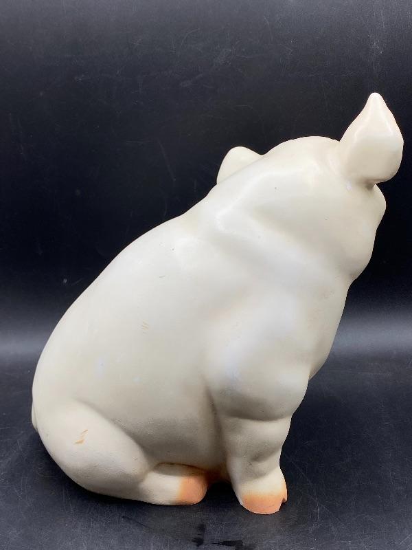Cute pig statue yard art from Universal Statuary Corp. 1984 Signed and dated. No chips, does have some light scuffs. Looks like it may have been felted on the bottom at one time. Great inside or out, displays nicely. About 10" tall.