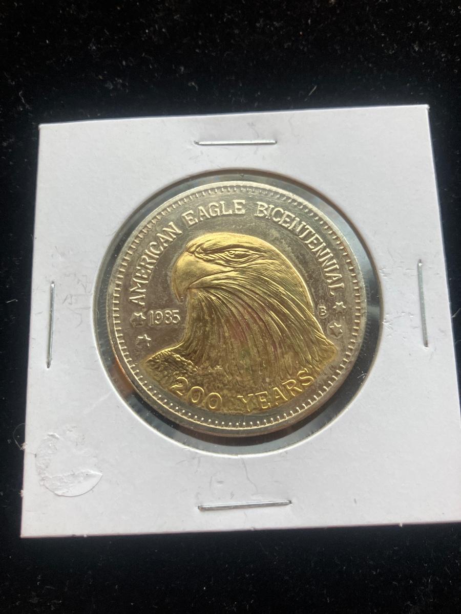 This is the official 1985 U.S. Mint “American Eagle / Double Eagle Bicentennial” bronze medal (38 mm, designed by Marcel Jovine and Elizabeth Jones) struck to commemorate the 200th anniversary of the American Eagle symbol.