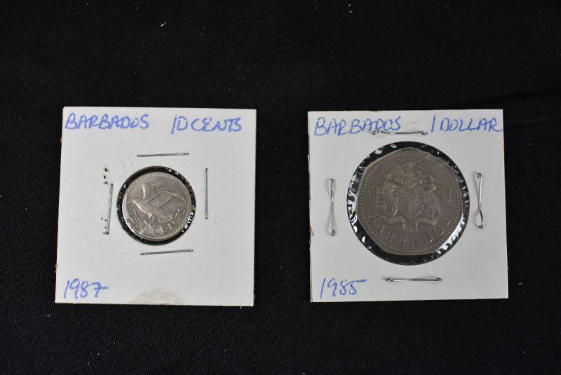 1985 Barbados 1 Dollar and 1987 Barbados 10 Cents