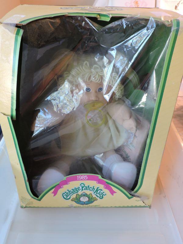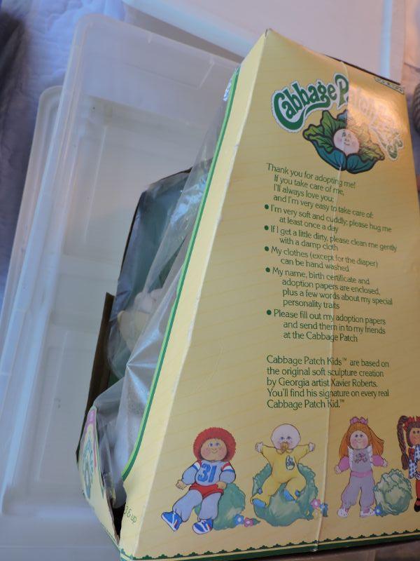 1985 Cabbage Patch Kids in box. May have been opened at one point, but doesn't appear to have been played with. **Please read Terms and Conditions before placing a bid. Pick up is Sunday, September 15, 2019 from 11am to 4pm and Tuesday, September 17 from 4pm-7pm in Sicklerville. All sales are final. All sales are as is, where is. Please review all photos. Any props included in photos are not included in listing. All measurements are approximate.