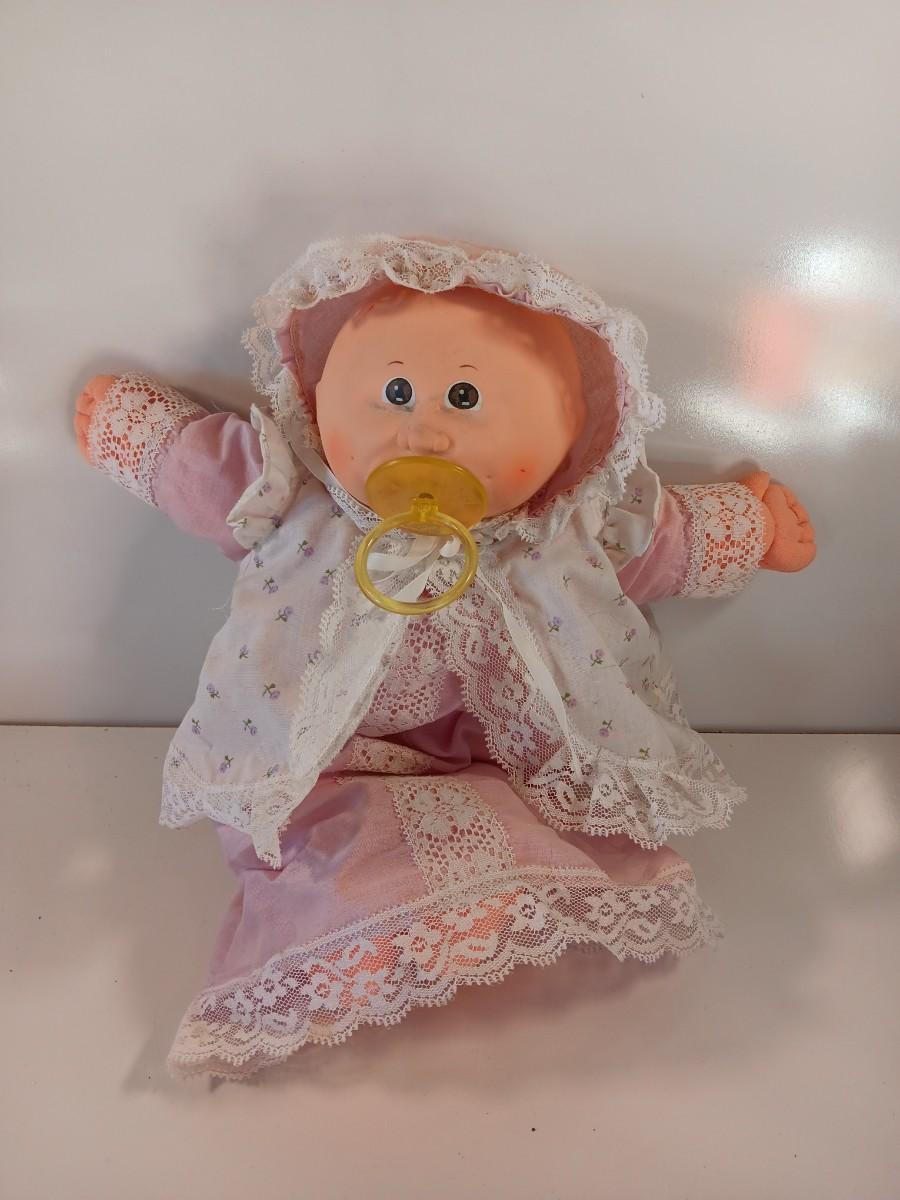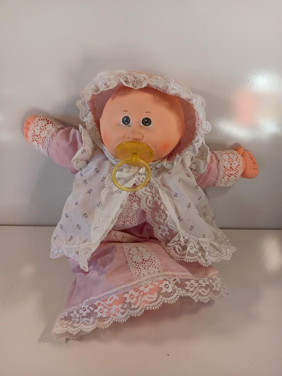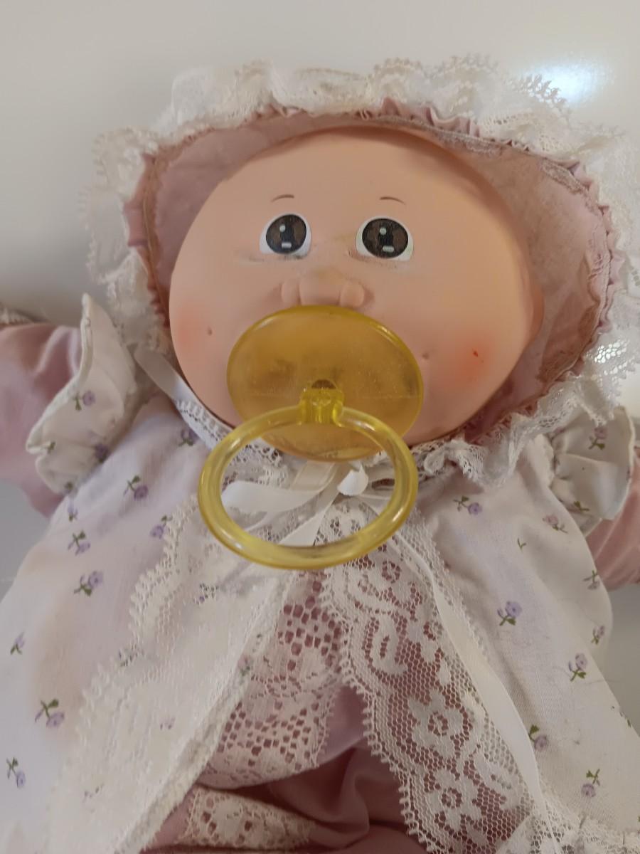 1985 Cabbage Patch Preemie girl pink dress March Of Dimes brown eyes, 2 dimple