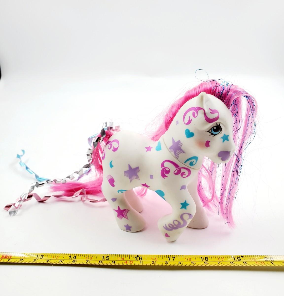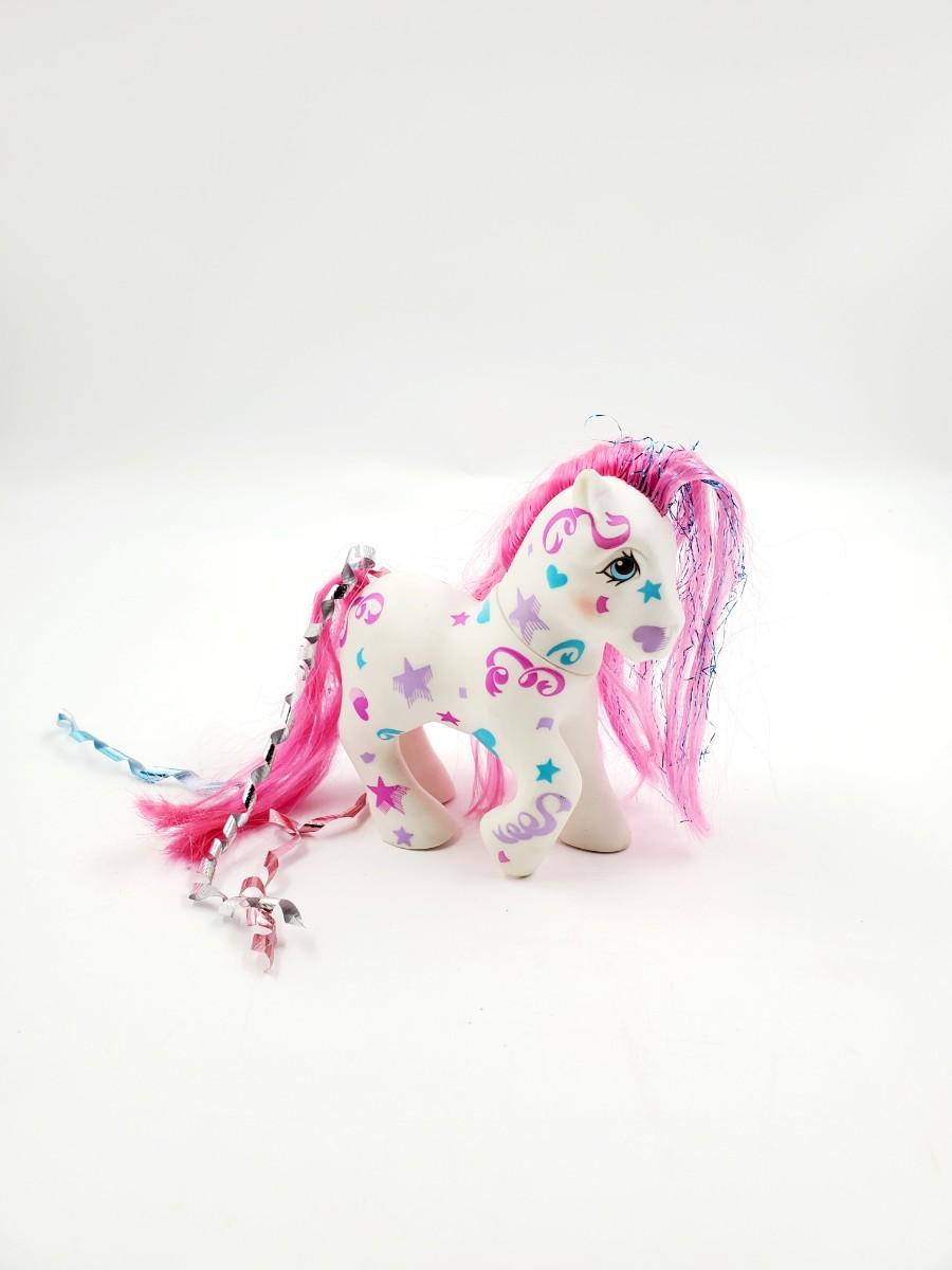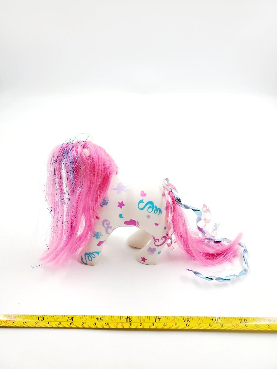 Birthday PONY, My Little PONY 10th anniversary 1985 Hasbro/Bradley, good overall condition despite the ribbons in the hair being a bit stretched.