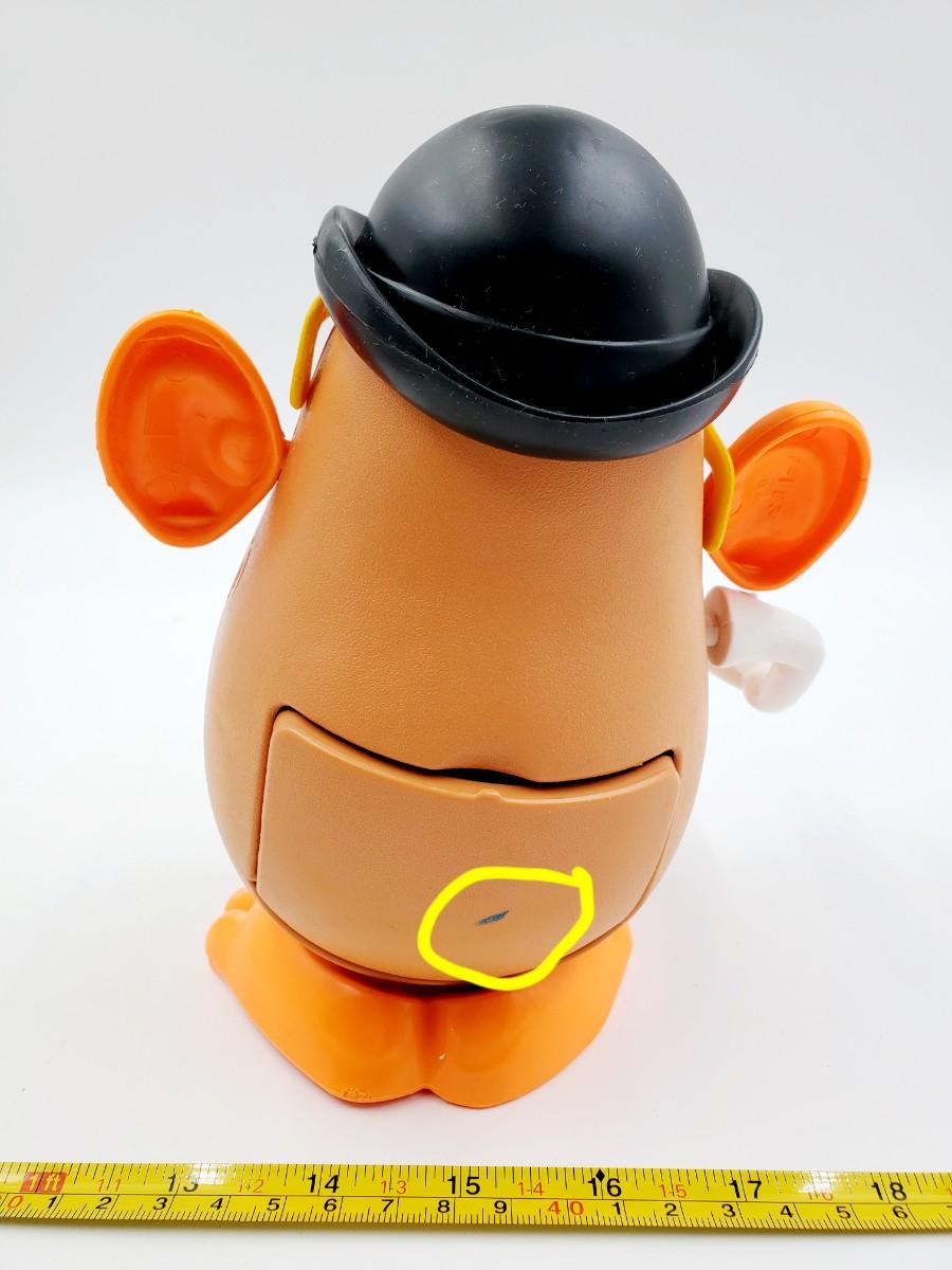 1985 Playskool Mr. Potato Head comes with 2 mustaches, 1 mustache/beard, 3 hats, 1 orange feet, blue boots, 1 eyes, 2 ears, 1 tux tie, 1 tongue, 1 teeth, 1 yellow glasses, I orange nose, 1 arm...Mr. Potato Head is missing an arm and has been played with, good overall condition.