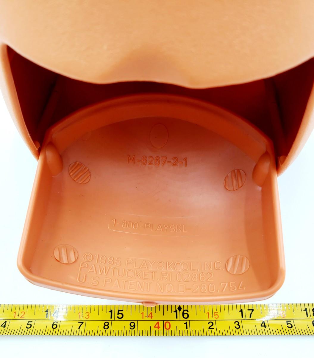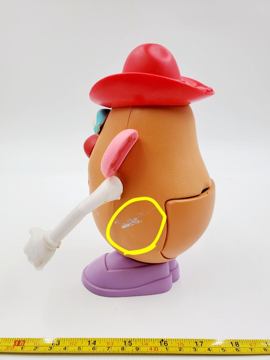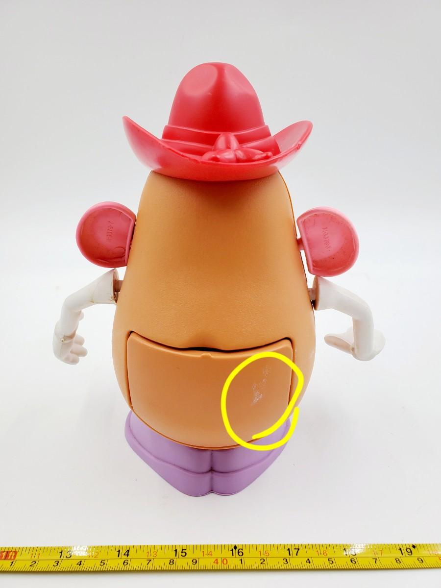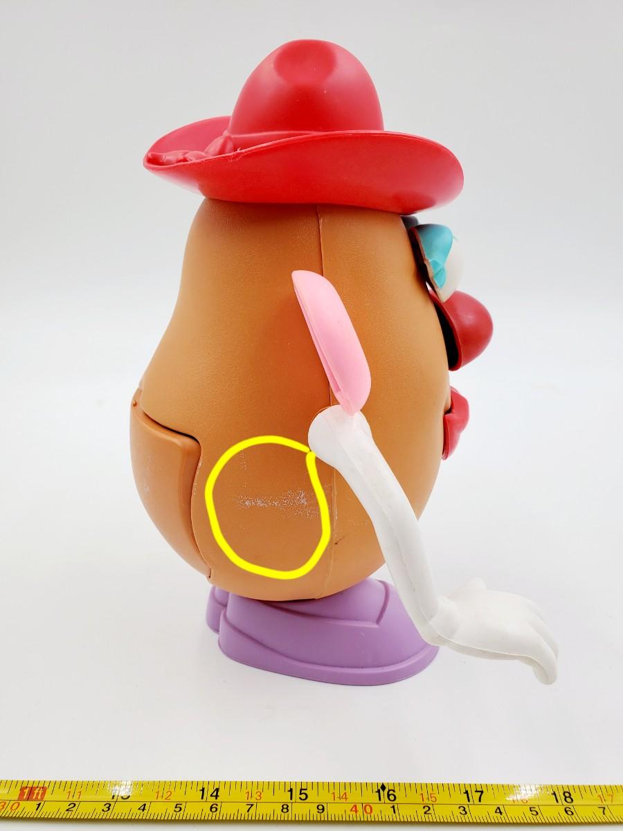 1985 Playskool Mrs. Potatoe Head with all her glorious accessories...2 ears, 3 mouths, 1 nose, 4 hats, set of purple shoes, earrings and a flower. This set has been played with and may show signs of such but still in good condition.