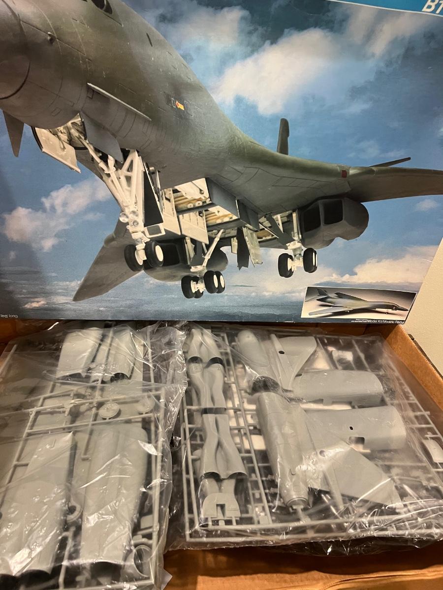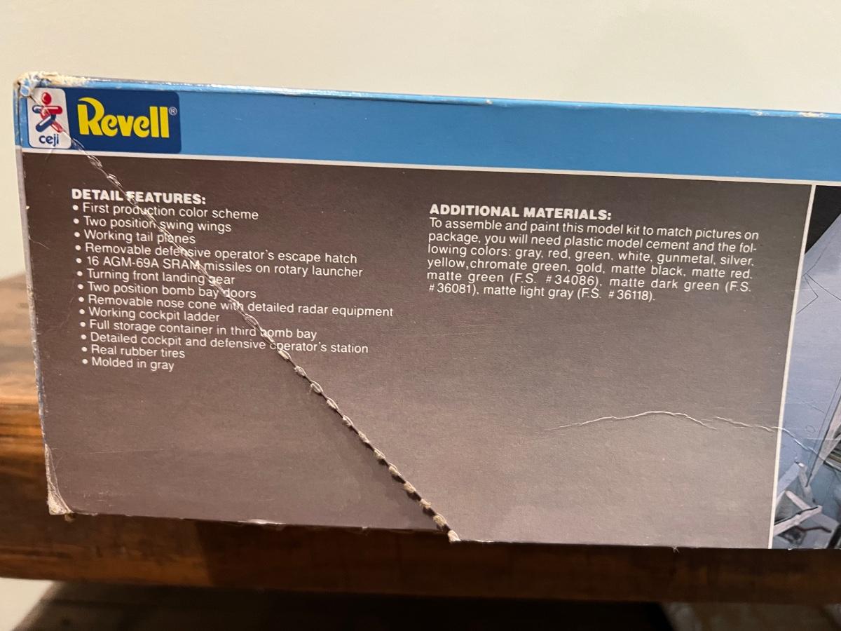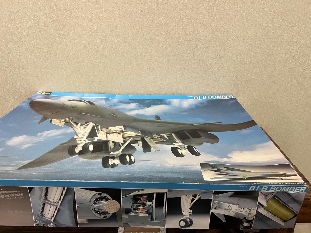 Revel 1:48 Rockwell B1-B Bomber Plastic Aircraft Kit 1985 with Box. Owner states all pieces are there. The inside appears to be sealed and instructions included. Over 3 feet long when assembled.