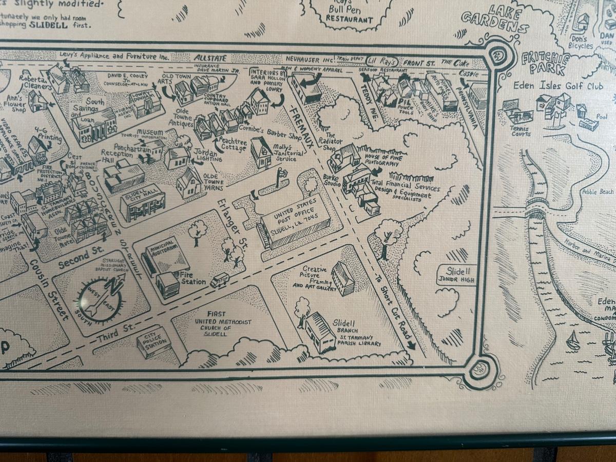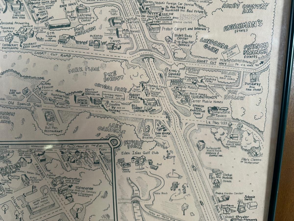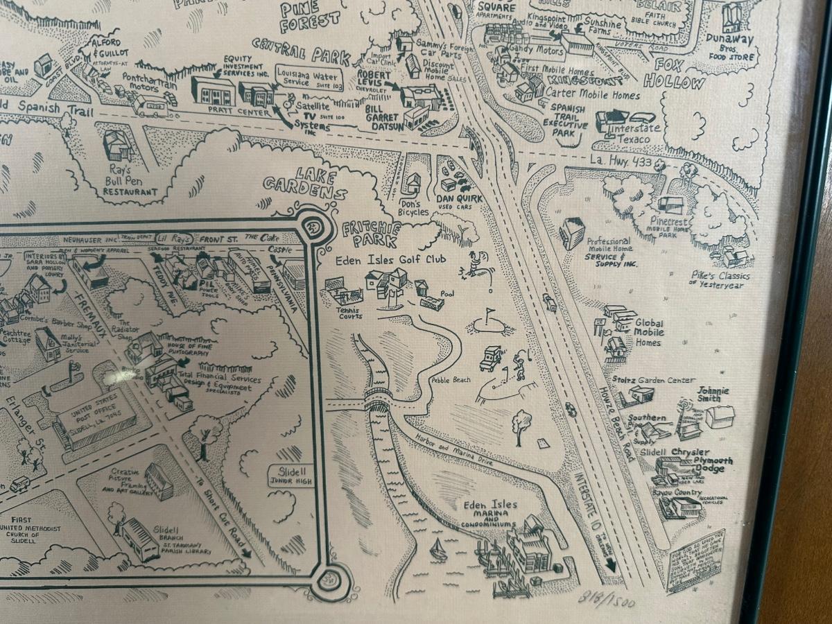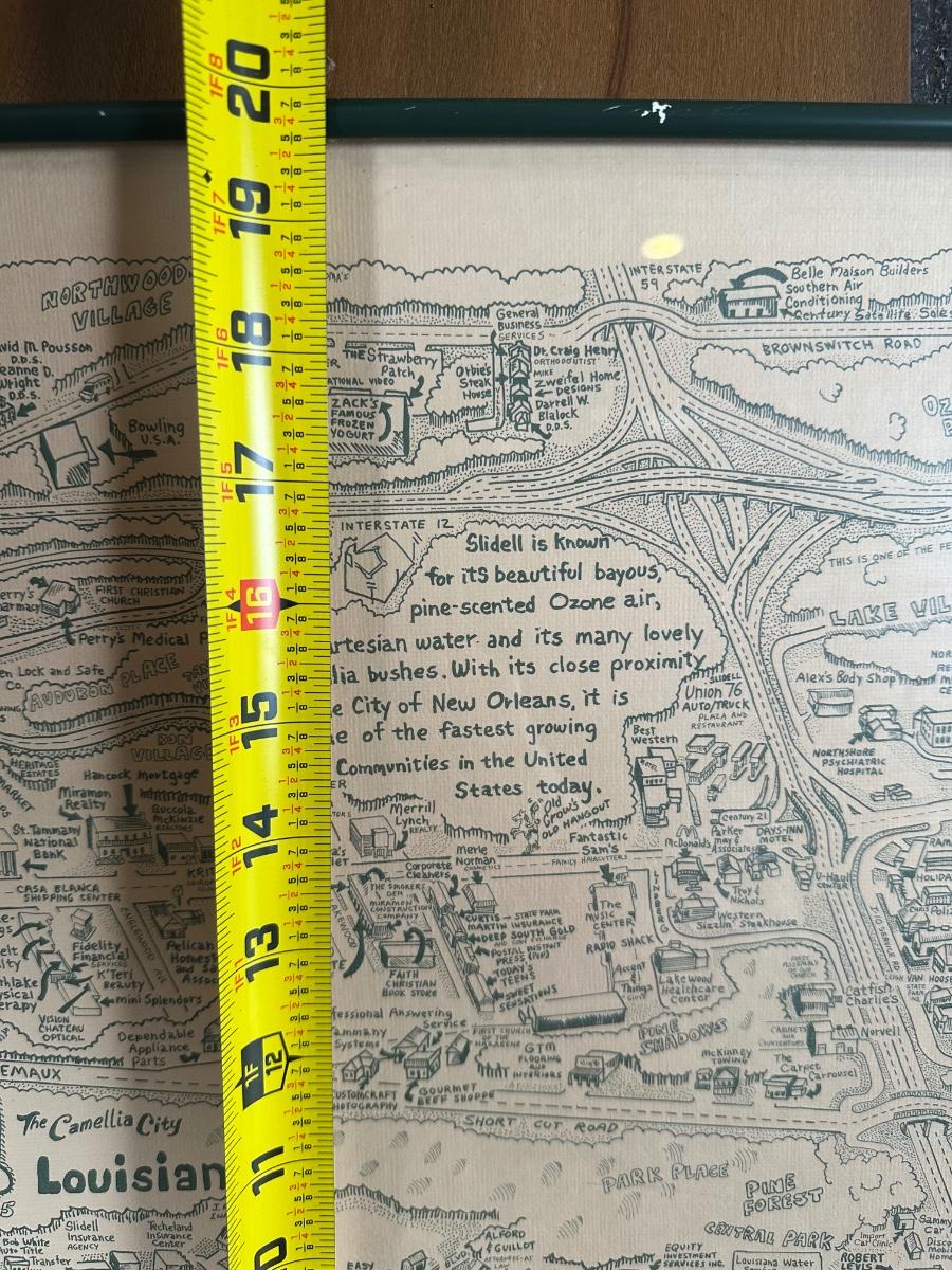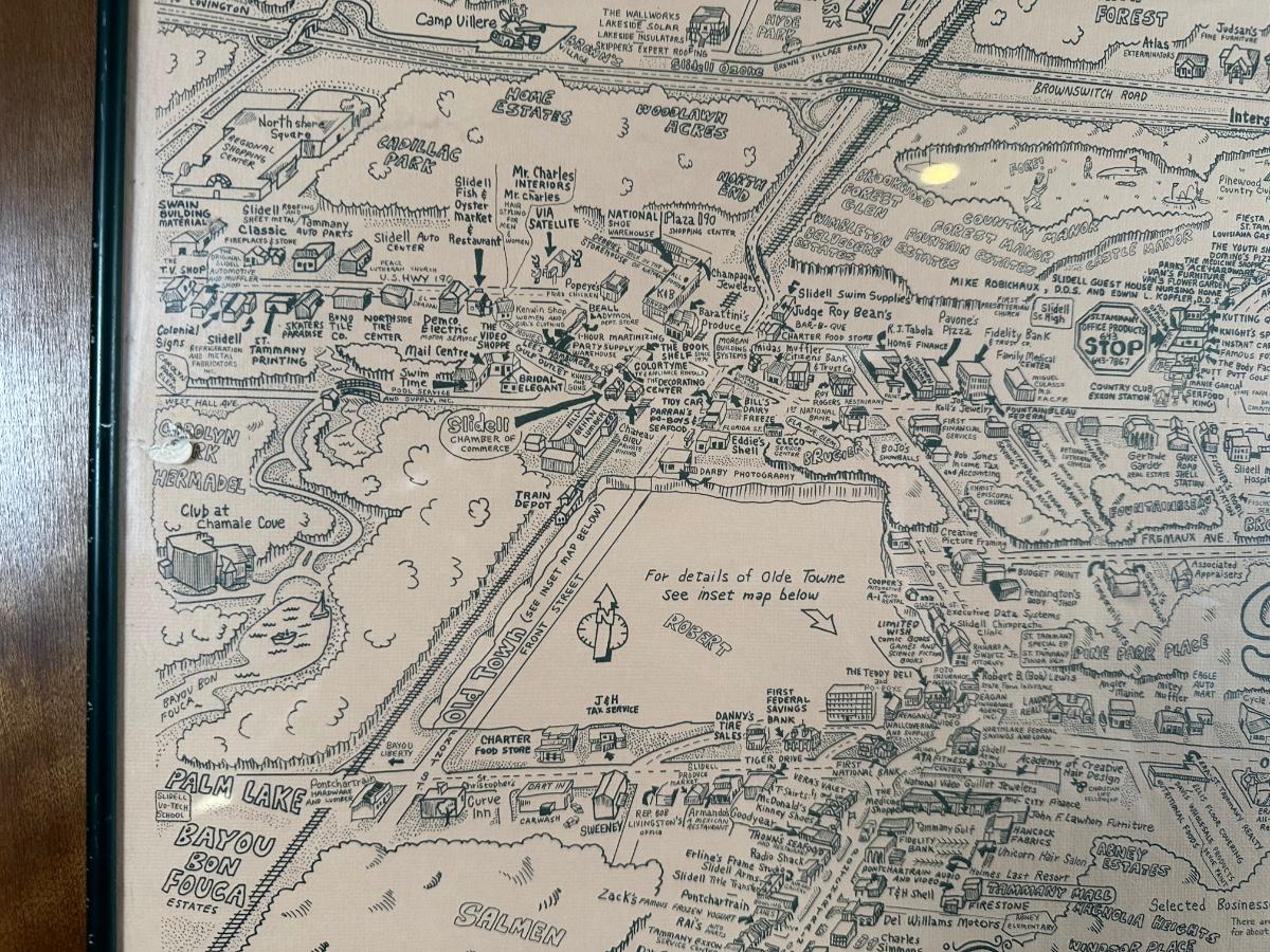 1985 Slidell, Louisiana Illustrated Map – Olde Towne – Framed & Signed