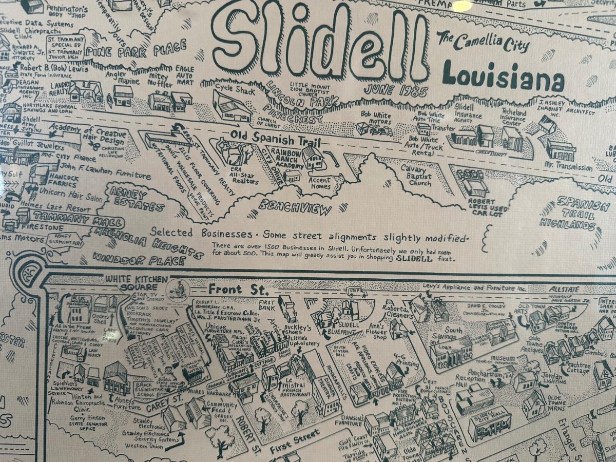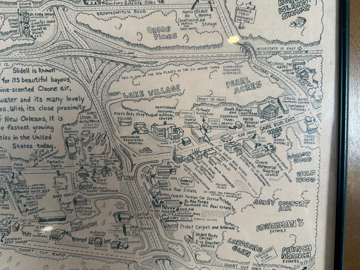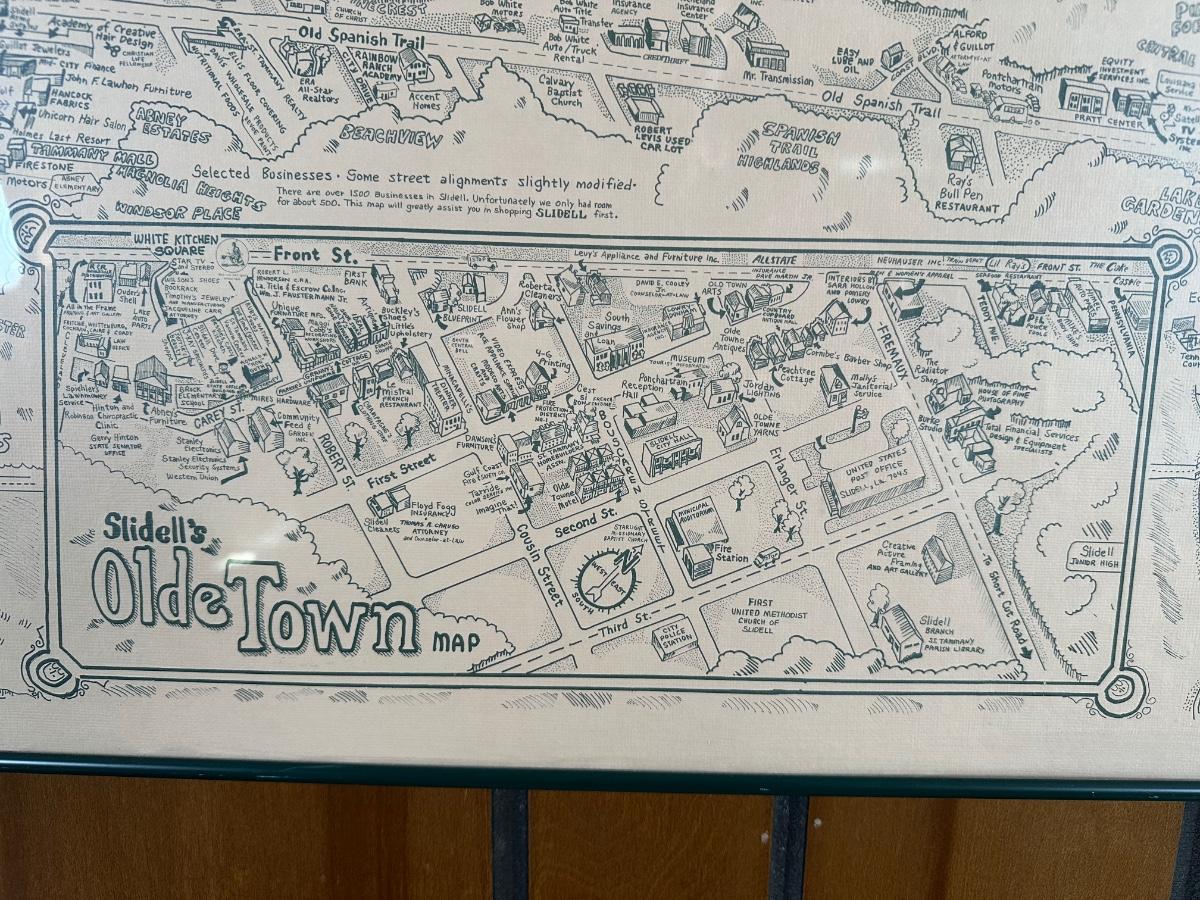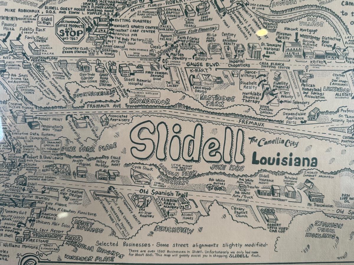 1985 Slidell, Louisiana Illustrated Map – Olde Towne – Framed & Signed