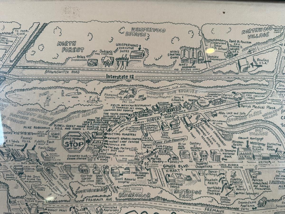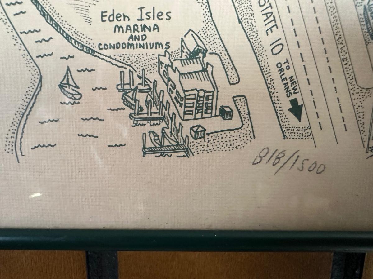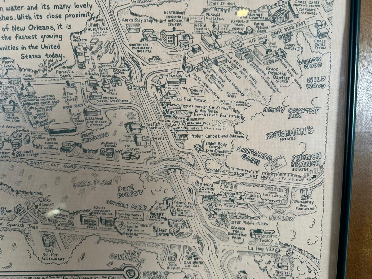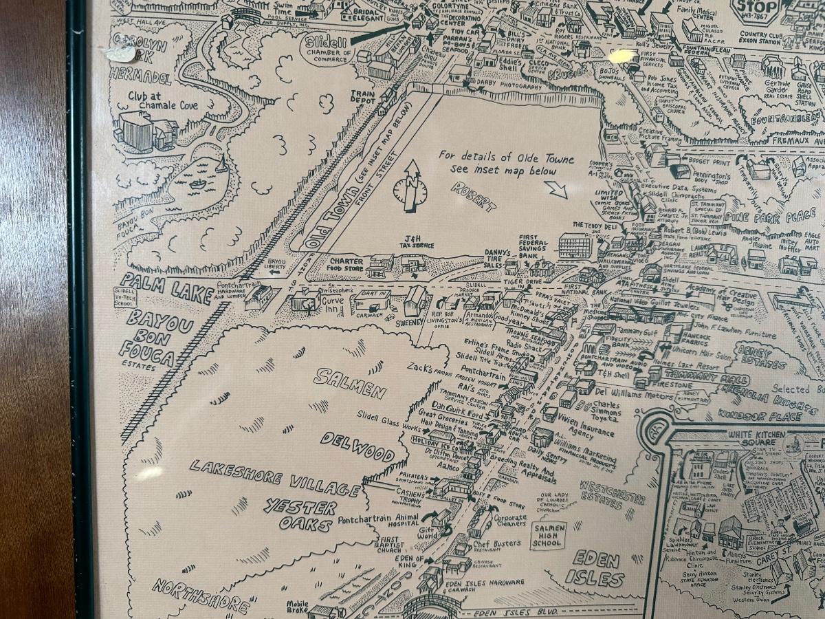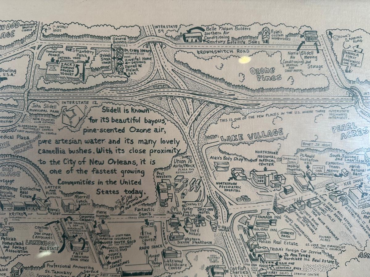 1985 Slidell, Louisiana Illustrated Map – Olde Towne – Framed & Signed