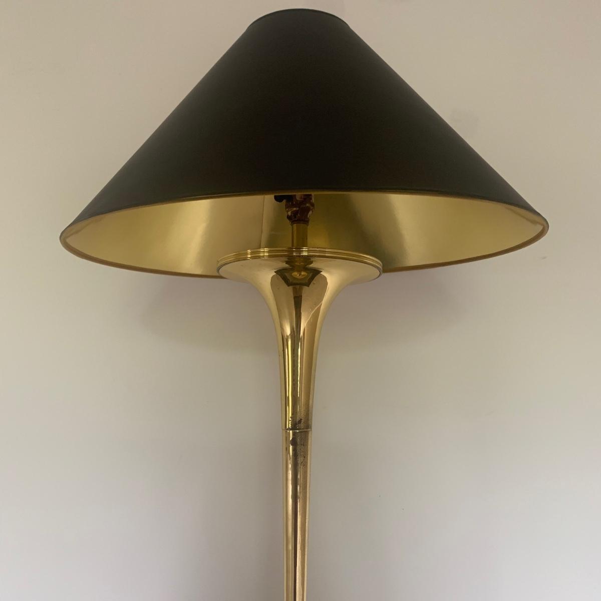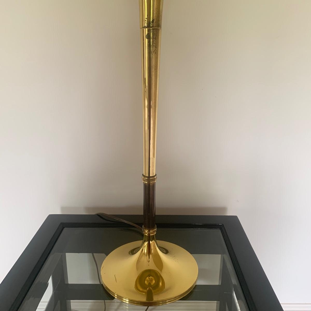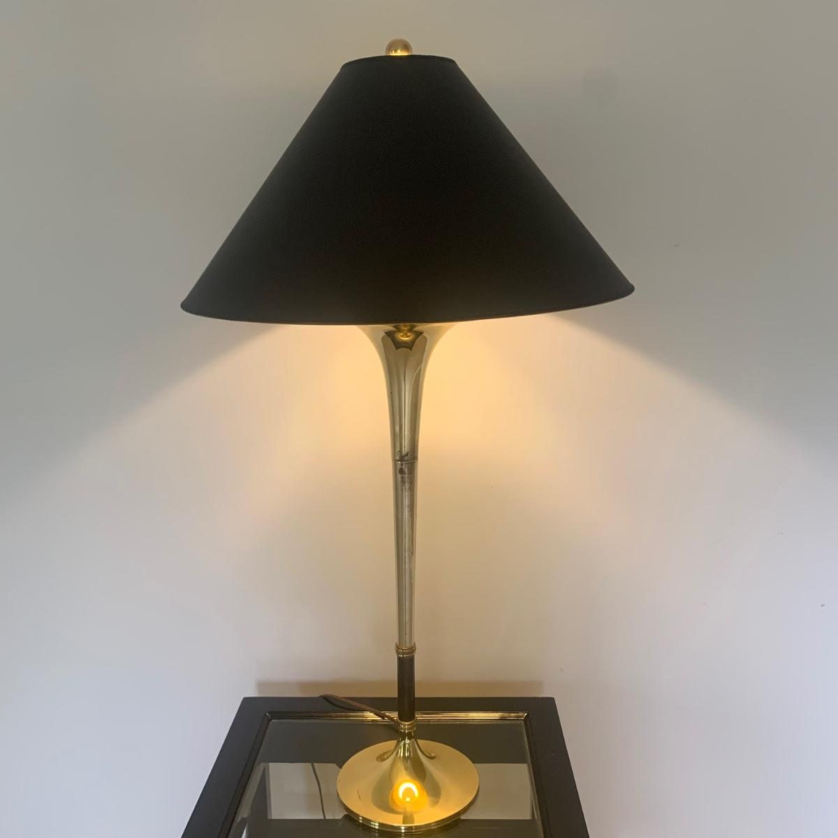 1986 Chapman Brass Trumpet Lamp with Art Deco Lacquered Side Table (2LR-KW)