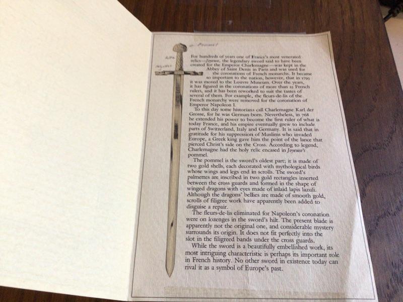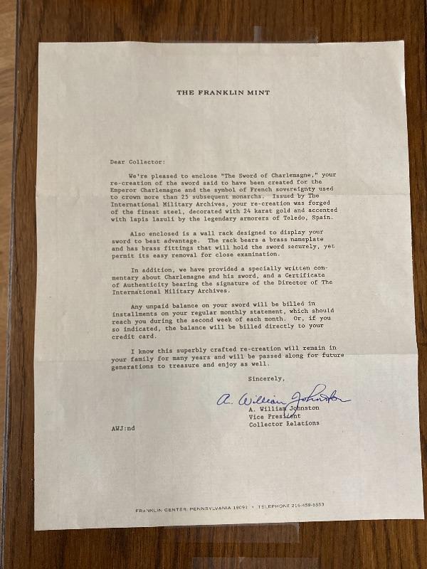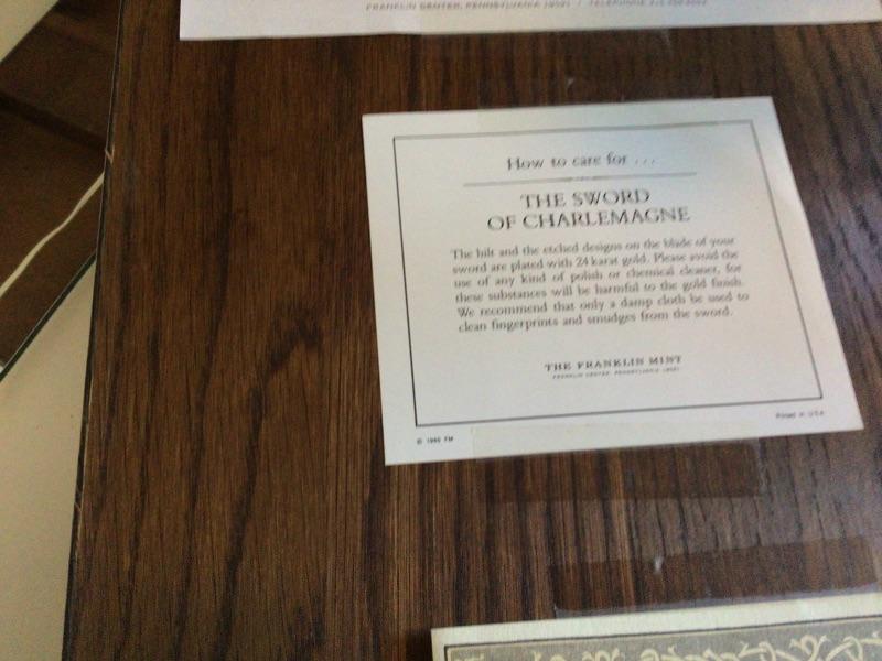 1986 Franklin Mint Mounted Replica Sword of Charlemagne