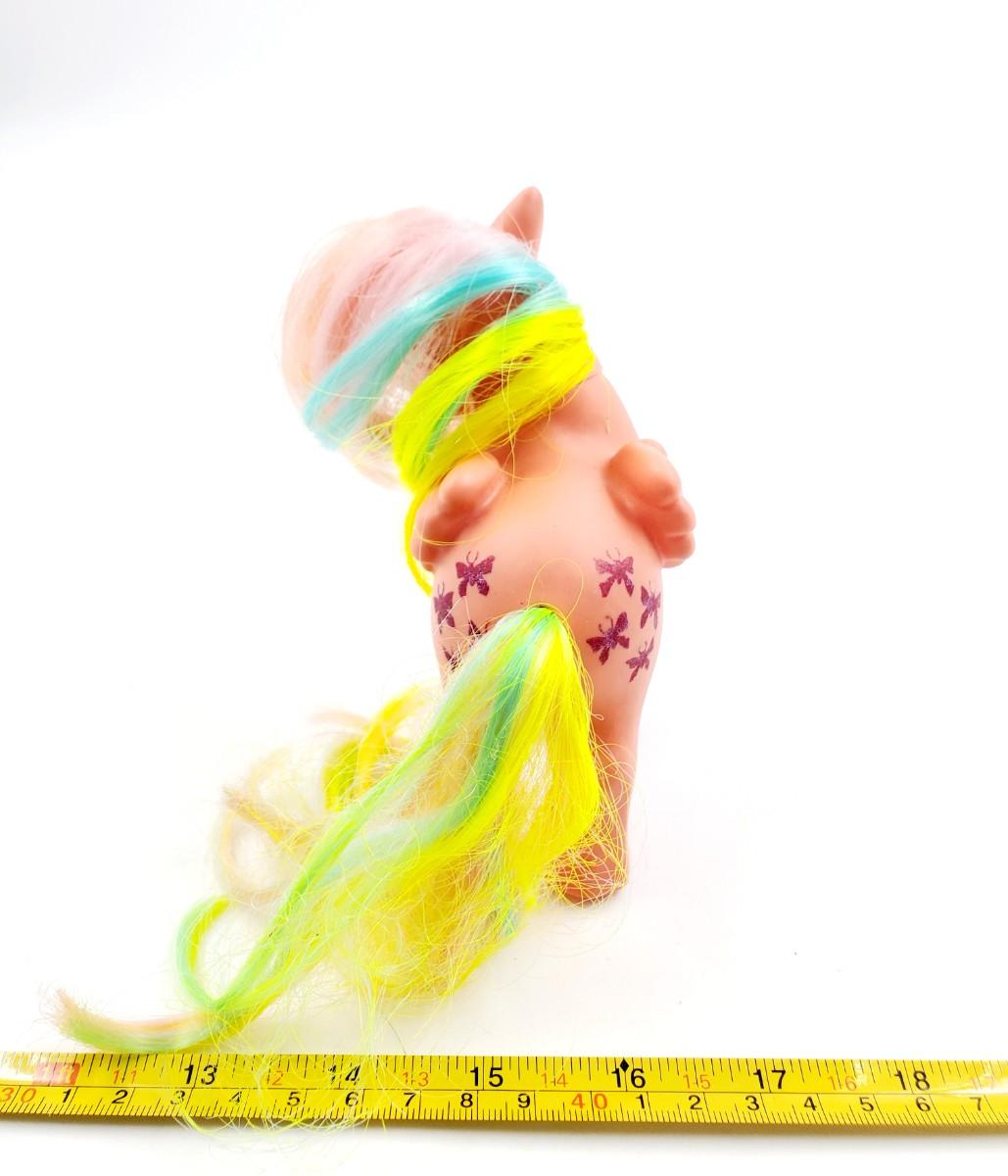 1986 Hasbro Flutterbye Rainbow Pegasus My Little Pony, she does have some markings that couldn't be wiped off, see photos. Otherwise in good condition