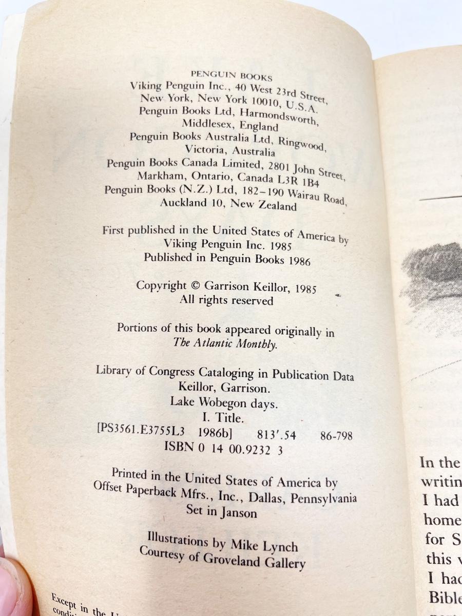 1986 “LAKE WOBEGON DAYS” BY GARRISON KEILLOR PAPERBACK BOOK