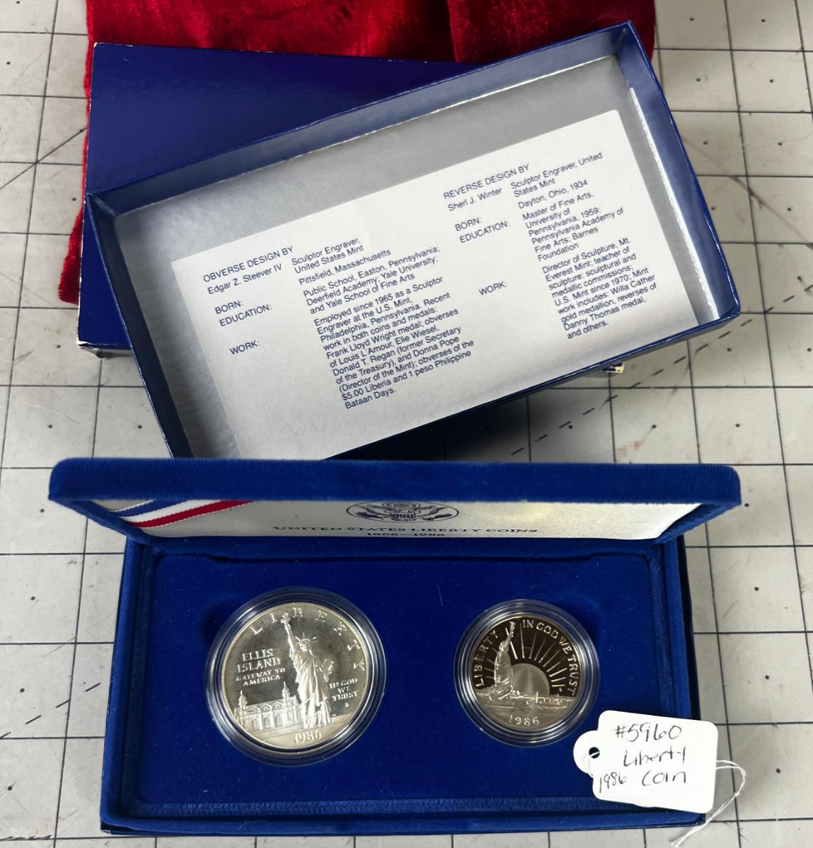 1986 Liberty Coin Set Dollar & Half Dollar. Both Depict the Statue of Liberty