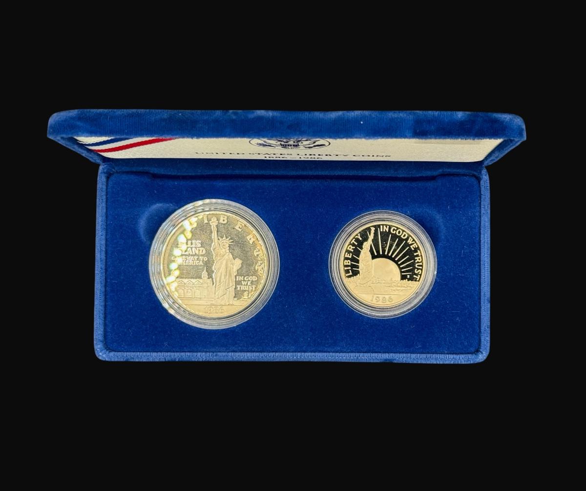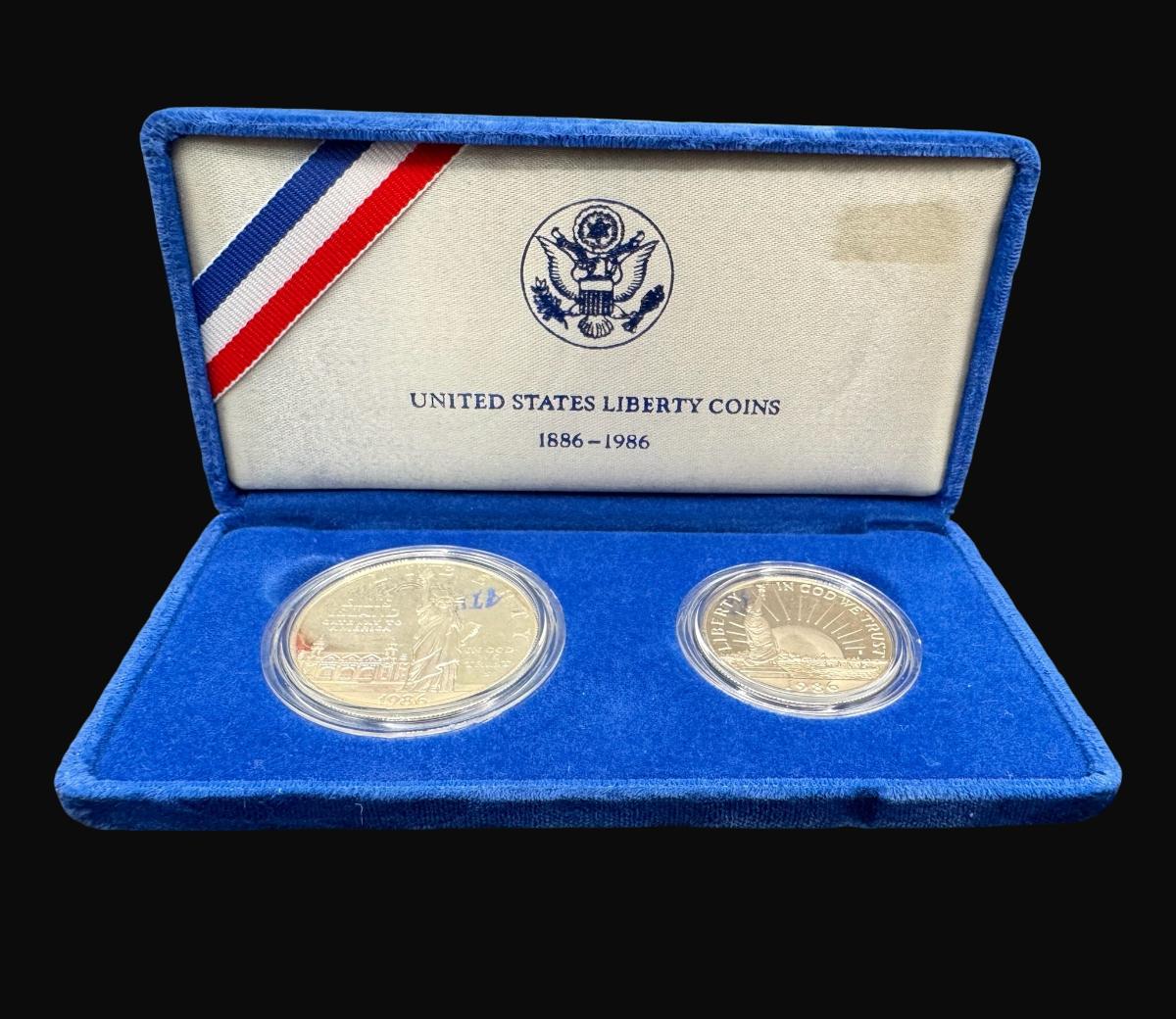 **WIRE TRANSFER IS REQUIRED IF SHIPPED.** This proof set includes a Statue of Liberty commemorative silver dollar (90% silver), and a clad half dollar. Pre-auction estimate: $50-$75. **ALL PRECIOUS METALS SALES ARE FINAL. NO REFUNDS WILL BE GIVEN FOR ANY REASON.** [AG]