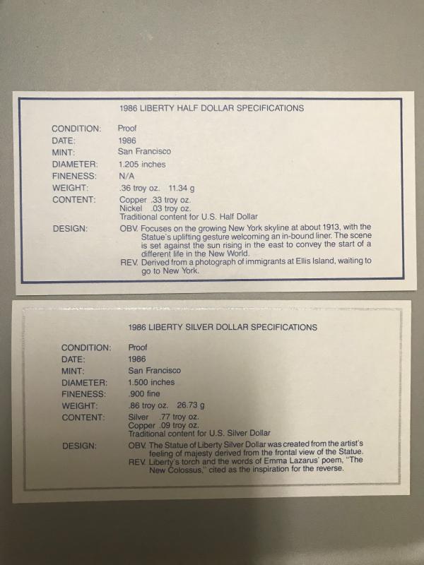 1986 Liberty Silver and Half dollar US Mint Proof Set