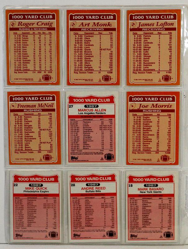 1986 Topps 1000 YARD CLUB FOOTBALL CARDS SET - ART MONK Roger Craig JOE MORRIS James Lofton MINT