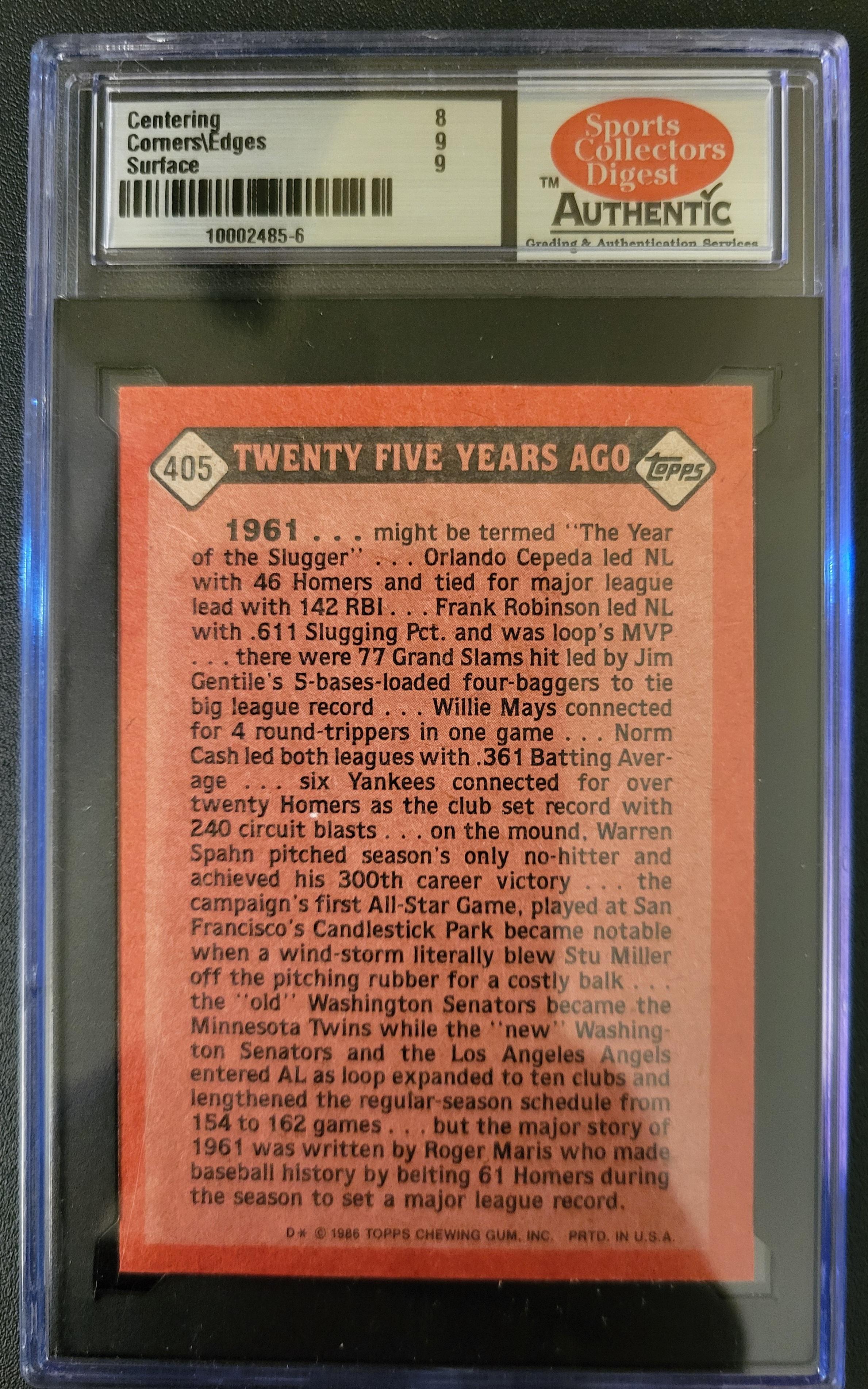 1986 Topps Roger Maris Turn Back the Clock SCD Authentic NM/MT 8.5